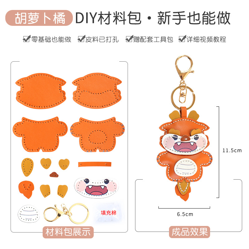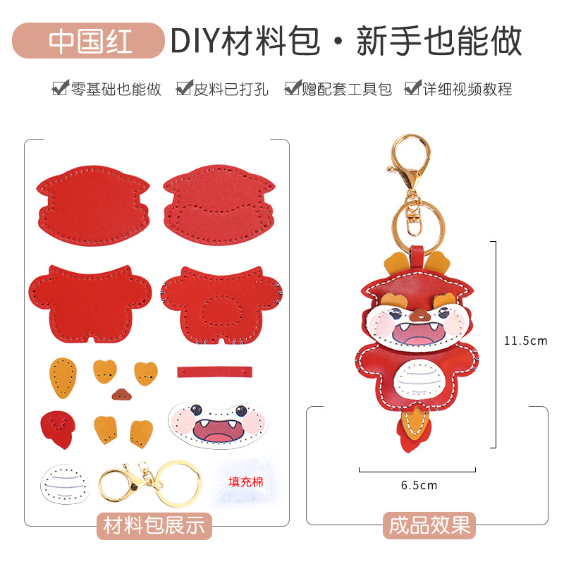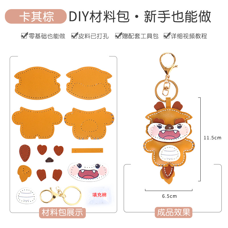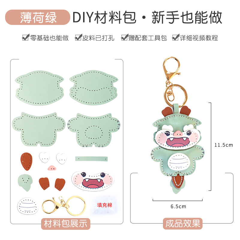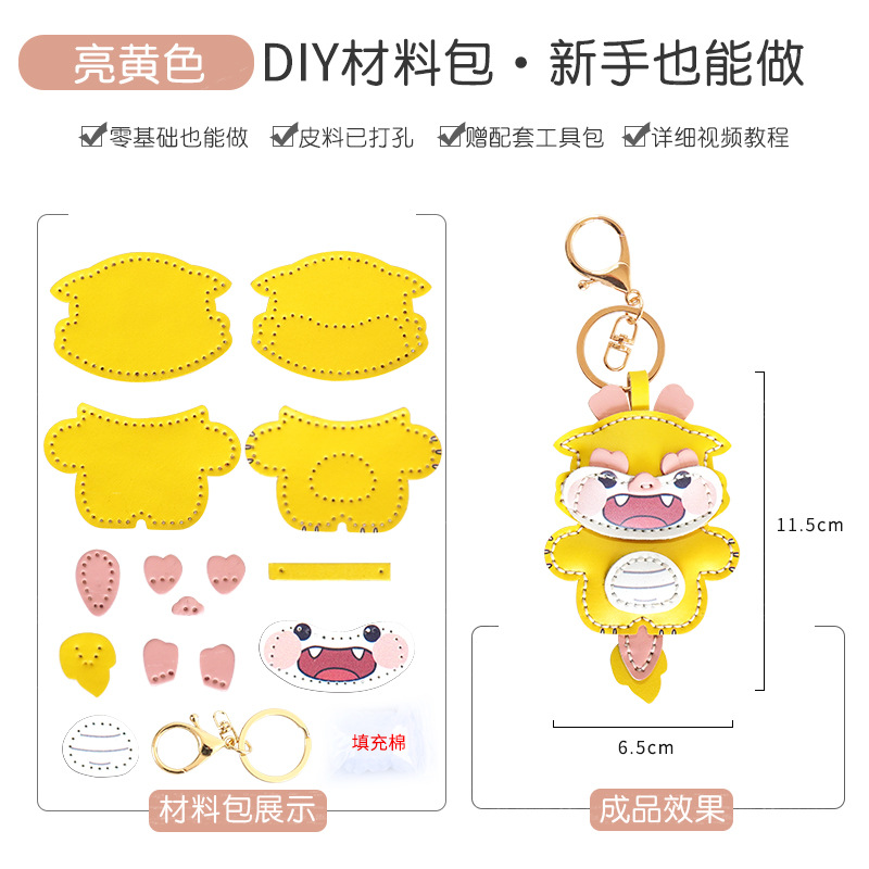 DIY 수제 드래곤 년 자동차 키 체인 펜던트 정품 가죽 창조적 인 귀여운 Carto 가방 교수형 커플 여성 소재 가방