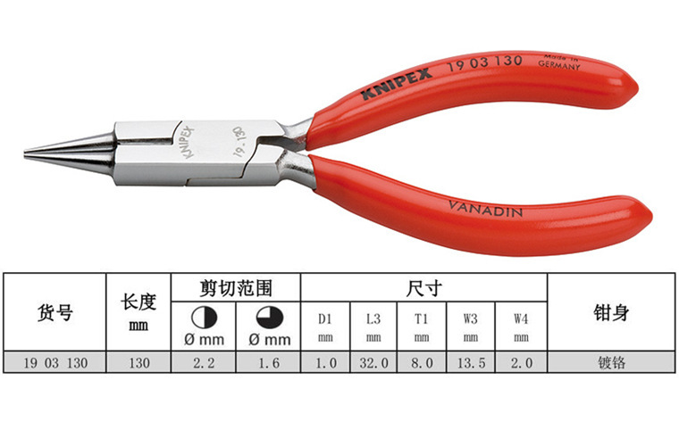 Kunipike KNIPEX 쥬얼리 펜치, 전단 입 라운드 코 펜치 1901130