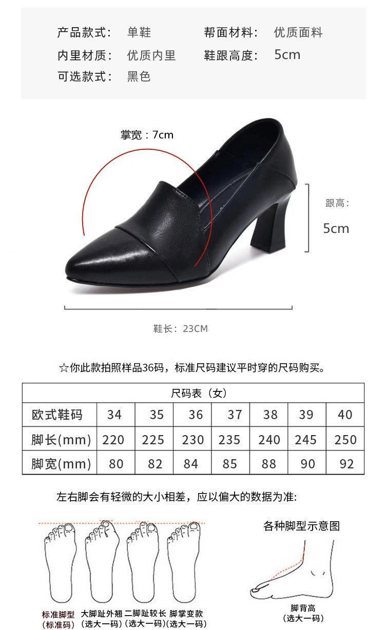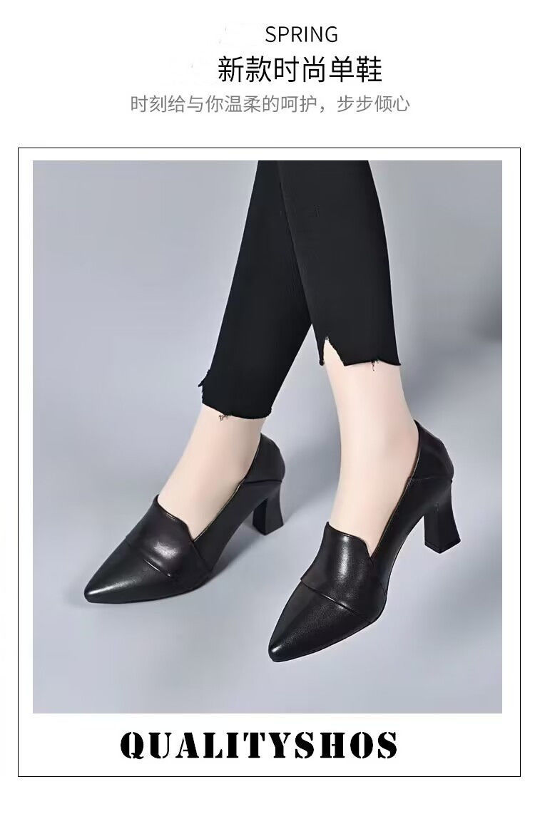 새로운 청키 힐 싱글 레이어 신발 여성 미드 힐 한국식 슬립 온 여성 신발 소프트 힐 하이힐 올 매치 심플한 뾰족한 가죽 신발스토어 가기