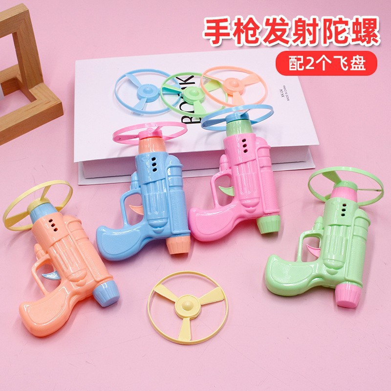 창조적 인 비행 접시 총 자이로 회전 총 권총 대나무 잠자리 비행 바퀴 장난감 Frisbee TikTok hot