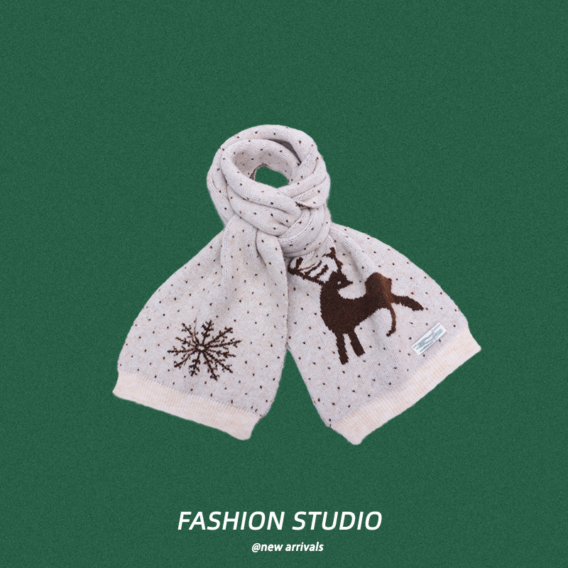 크리스마스 니트 따뜻한 사슴 목 보호 스카프 가을과 겨울 선물 맞춤 인쇄 눈송이 엘크 방청 스카프스토어 가기