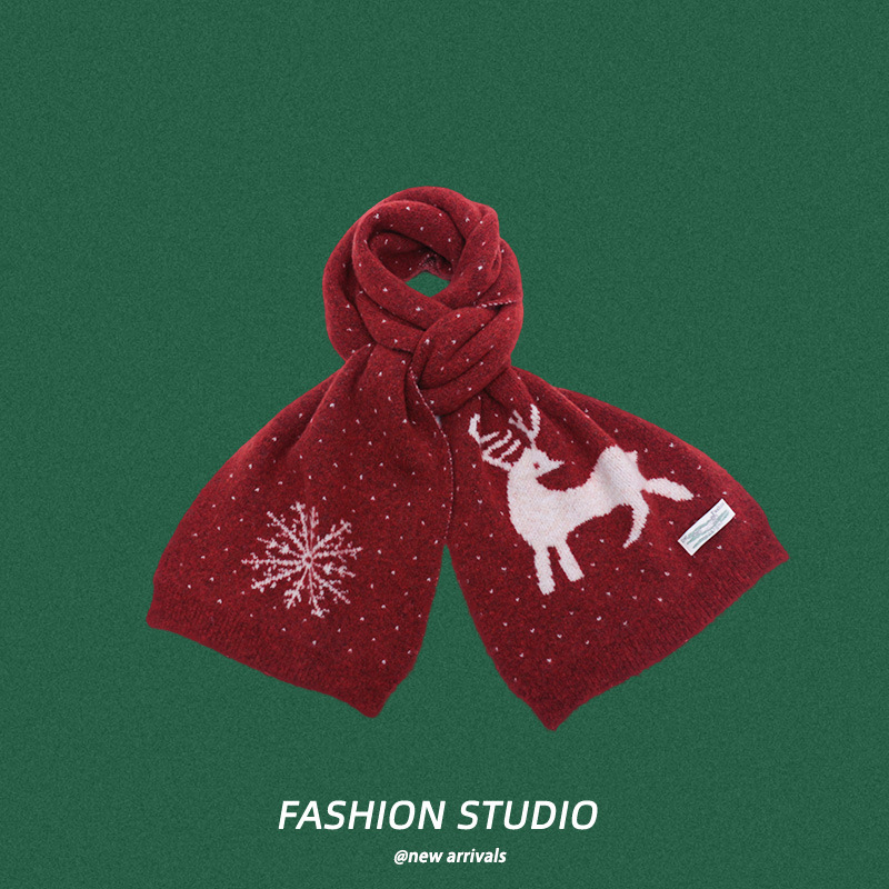 크리스마스 니트 따뜻한 사슴 목 보호 스카프 가을과 겨울 선물 맞춤 인쇄 눈송이 엘크 방청 스카프