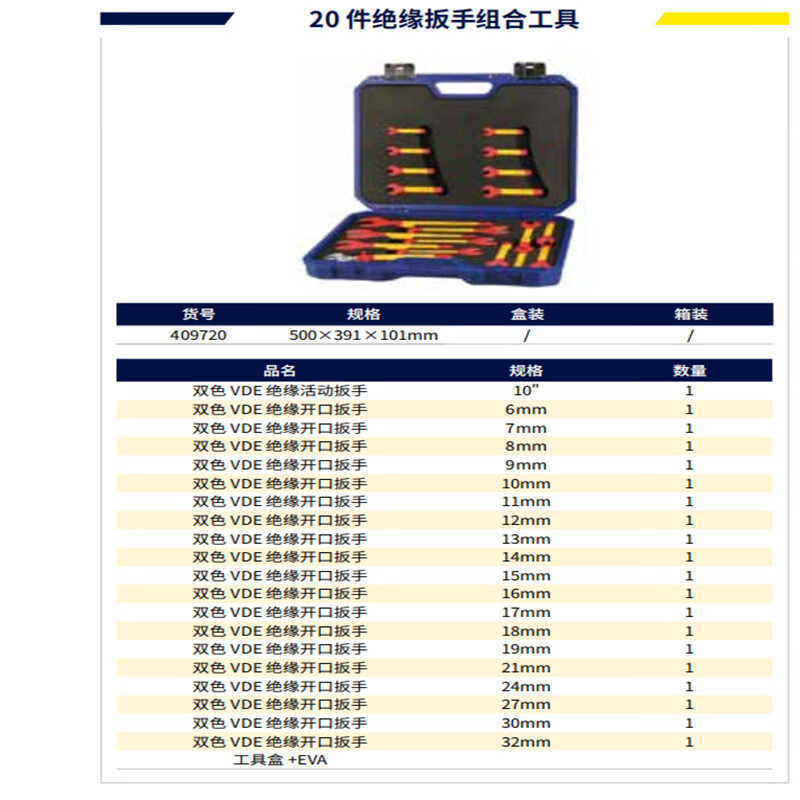 큰 벽 20 조각 절연 렌치 조합 도구 500*391*101 (플라스틱 상자) 409720