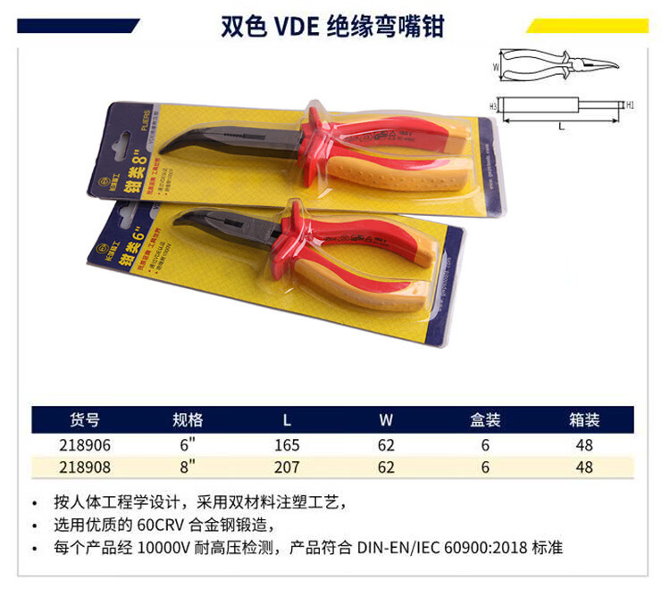 만리장성 2 색 VDE 절연 벤딩 펜치 고압 저항 벤딩 펜치 6 인치 [218906]