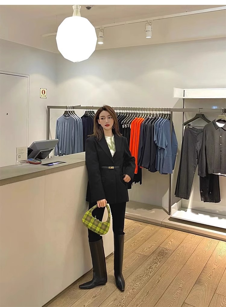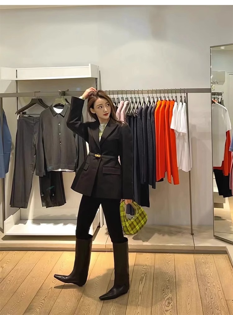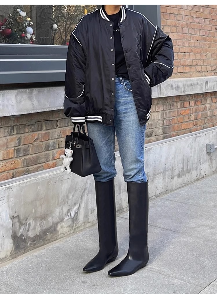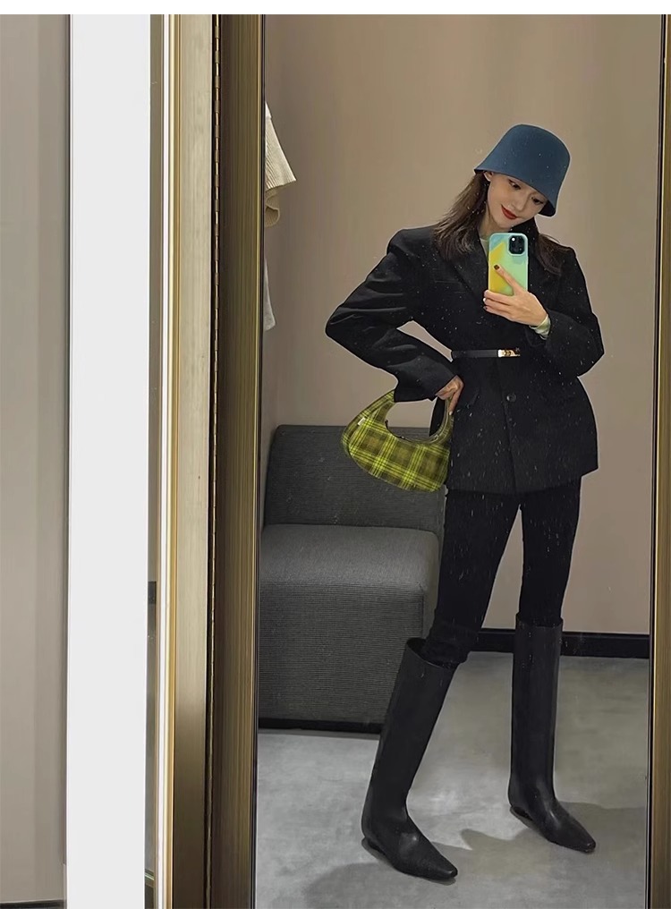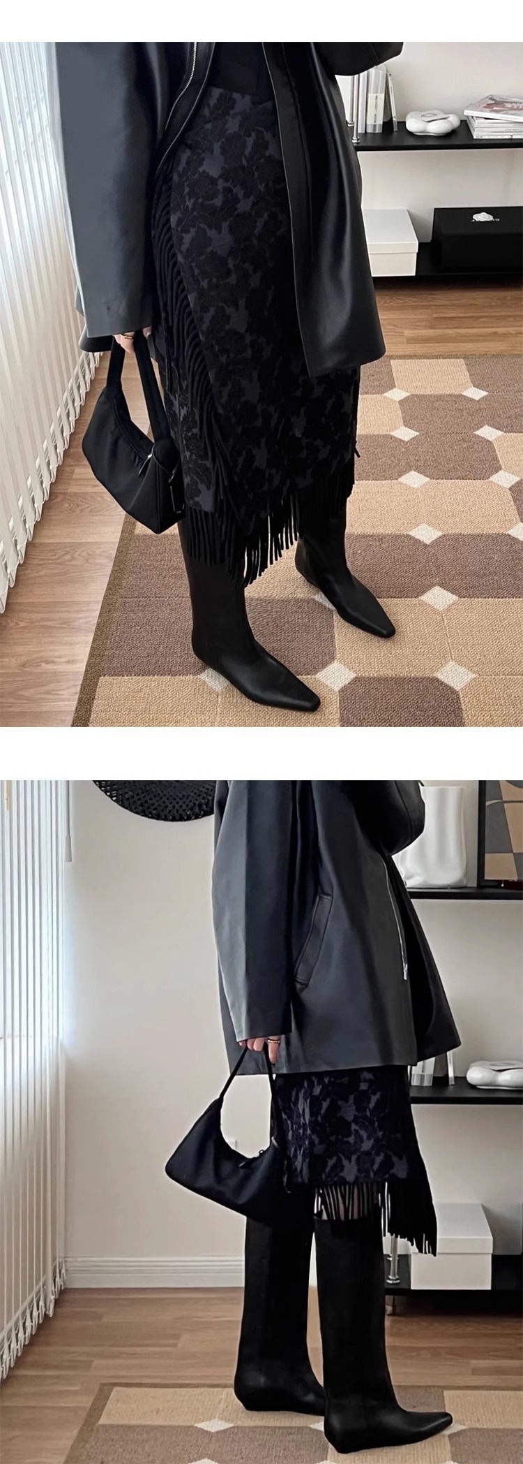 Cowhide 버전 ~ 통통녀 정품 가죽 뾰족한 복고풍 하이 탑 나이트 부츠 여성용 청키 힐 가죽 힐 슬리밍 무릎 길이 부츠스토어 가기