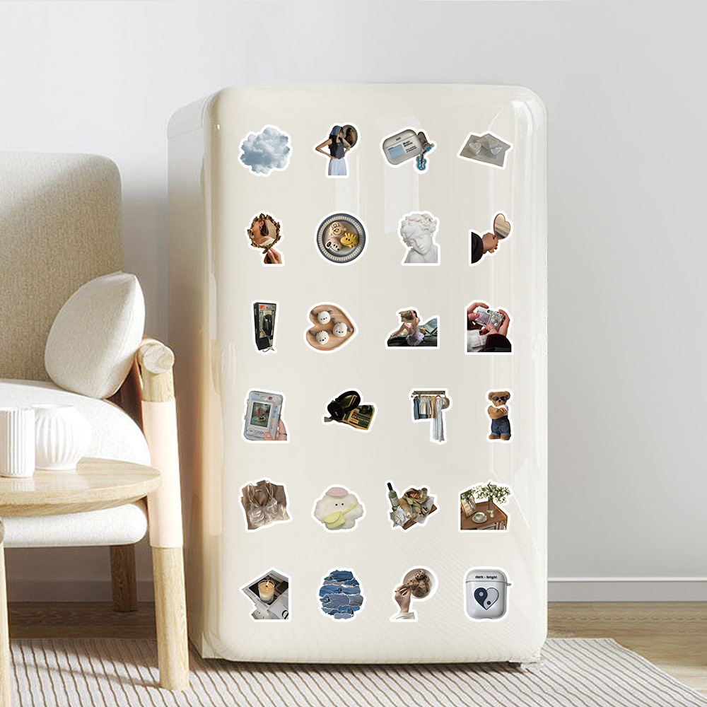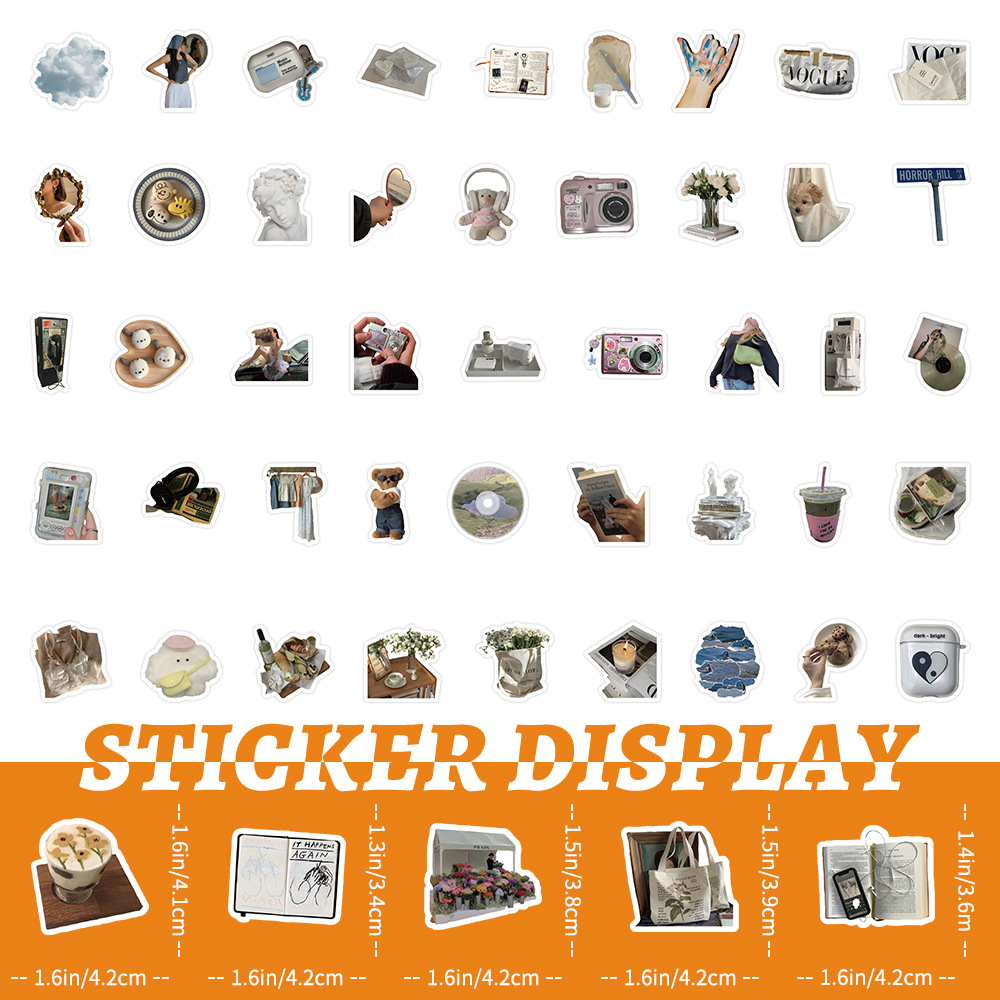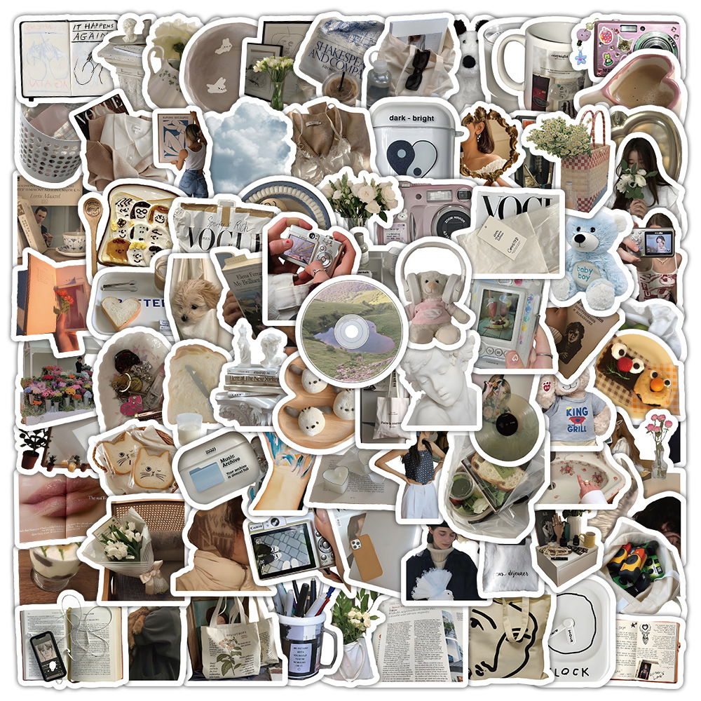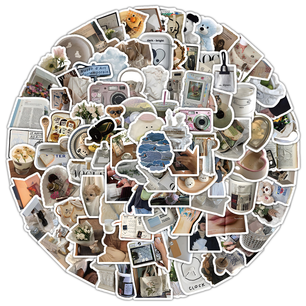100 복고풍 향수를 불러 일으키는 작은 물건 스티커 스타일 창조적 인 장식 노트북 문구 손 계정 소재 스티커스토어 가기