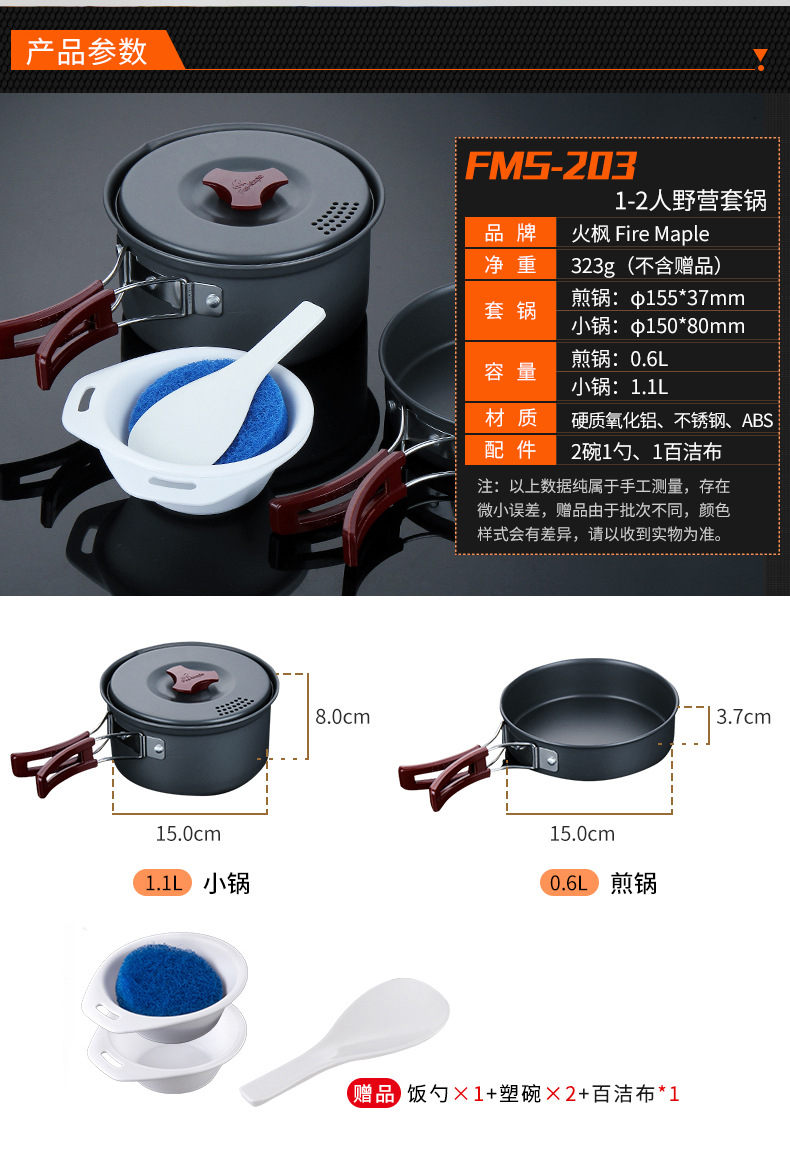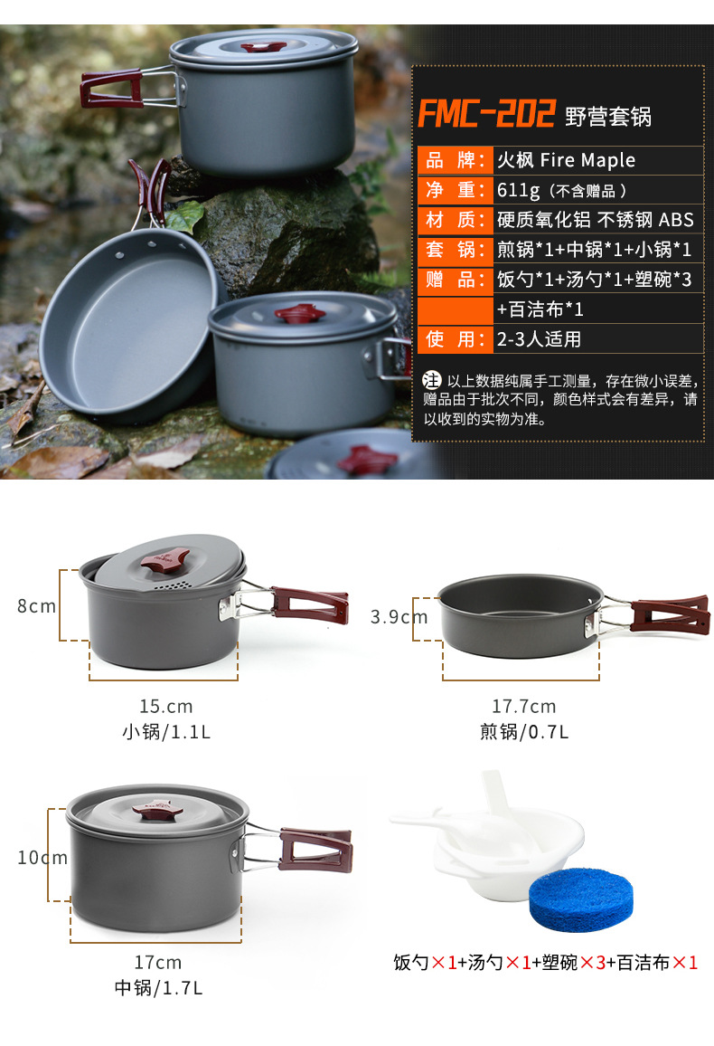 Huofeng 20 경제적 인 야외 세트 냄비 휴대용 피크닉 캠핑 냄비 2-3 사람들 조리기구 여행 냄비 세트 야외스토어 가기