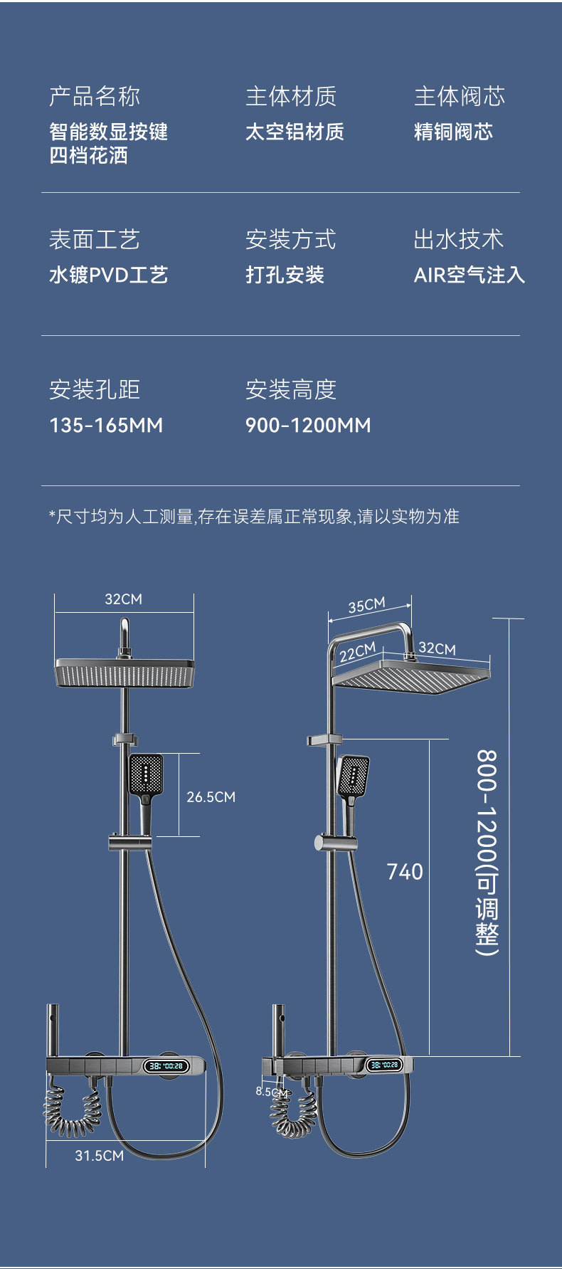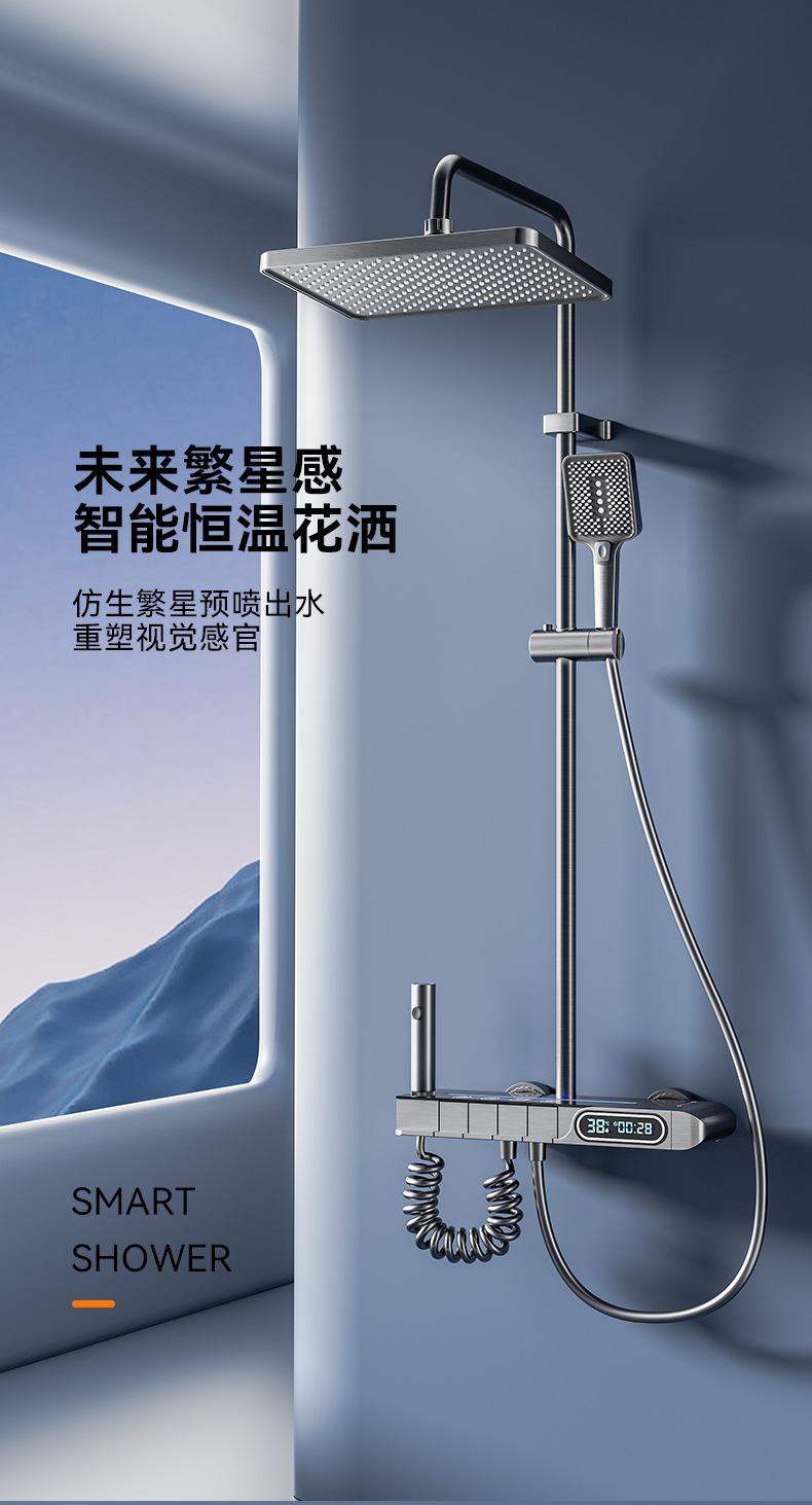 샤워 샤워 세트 가정용 욕실 총 회색 샤워 욕실 디지털 디스플레이 샤워 노즐 제조 업체 도매