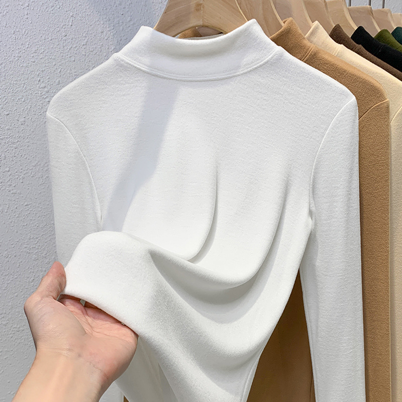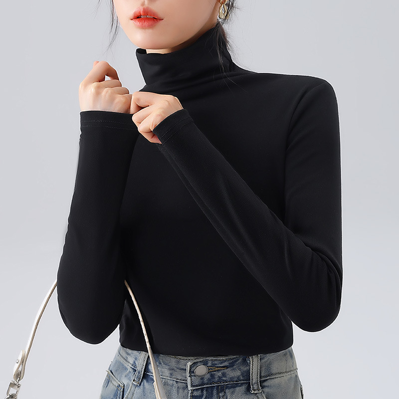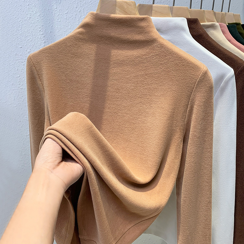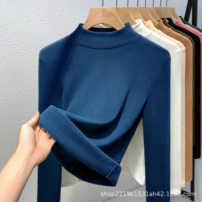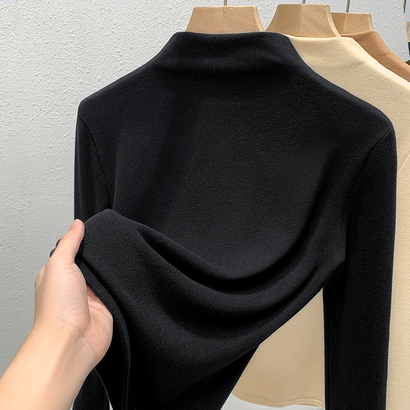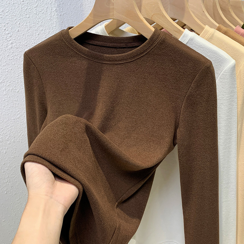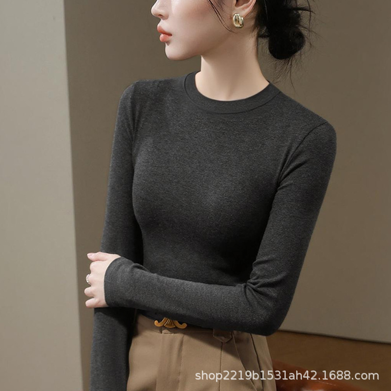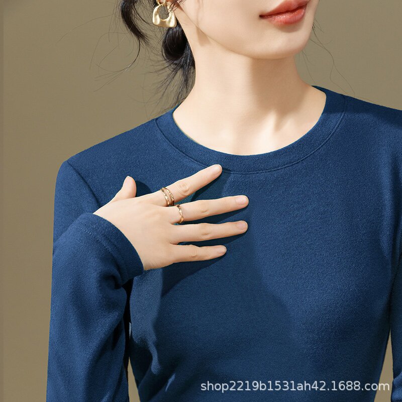 양면 독일산 벨벳 이너웨어 여성용 2025 신상 기본 라운드넥 기모 긴팔 보온 이너 탄력성 좋은 상의