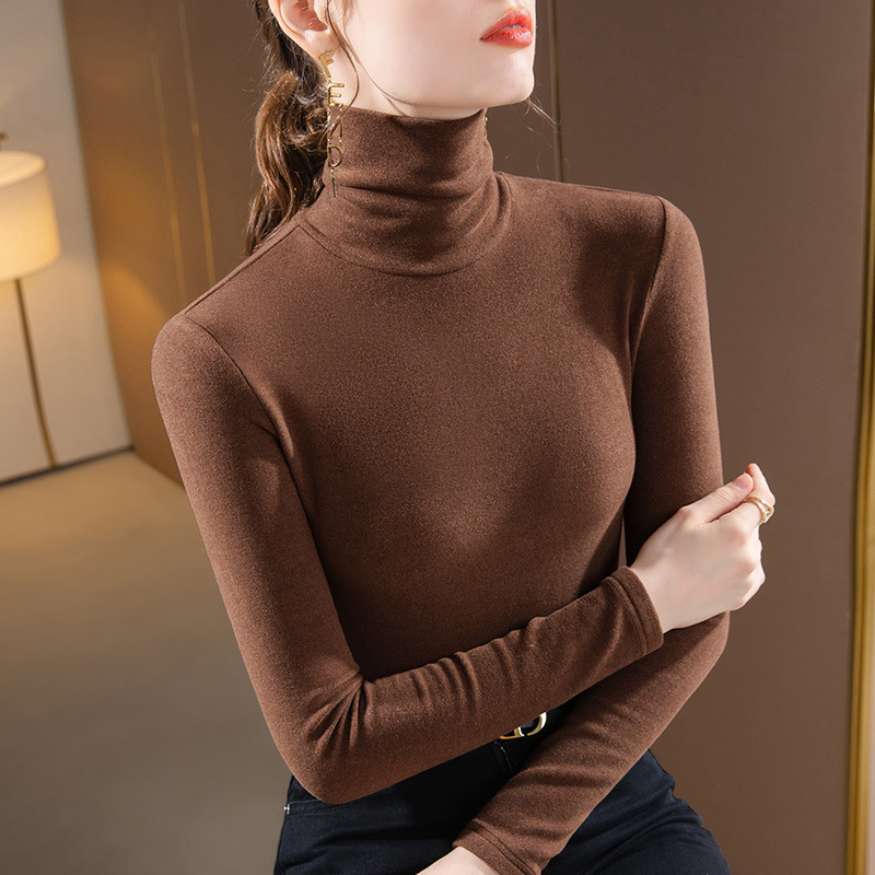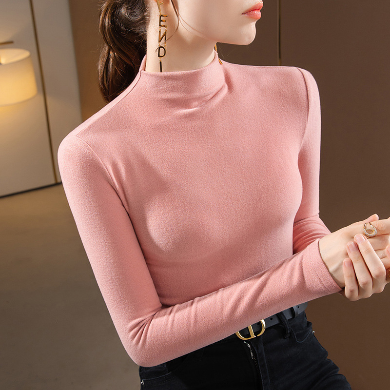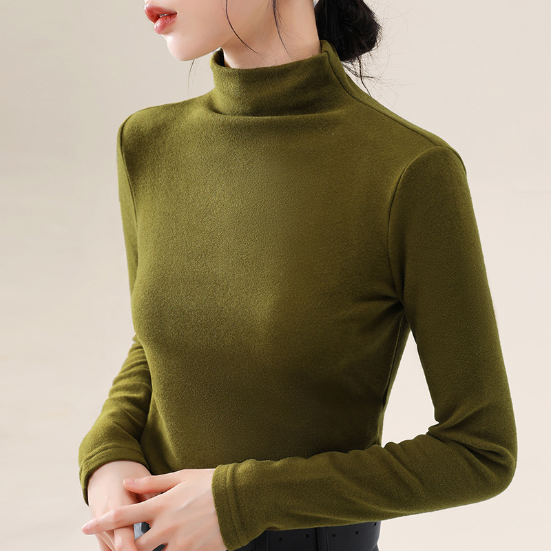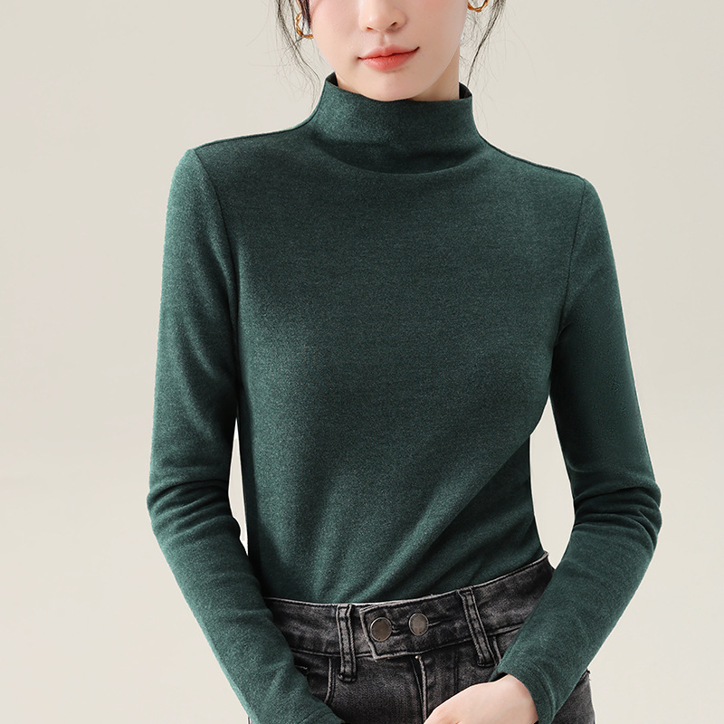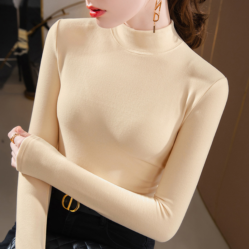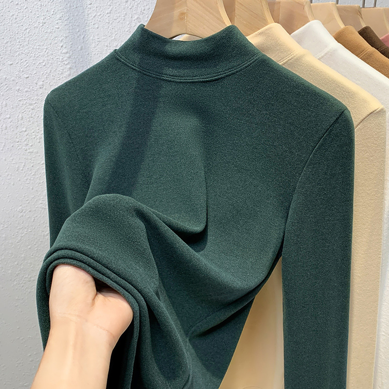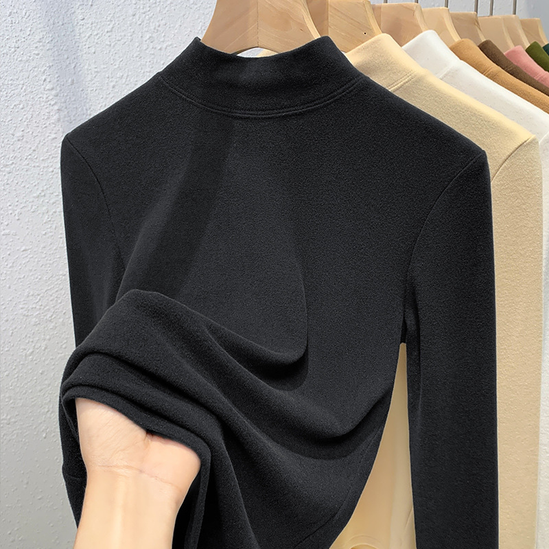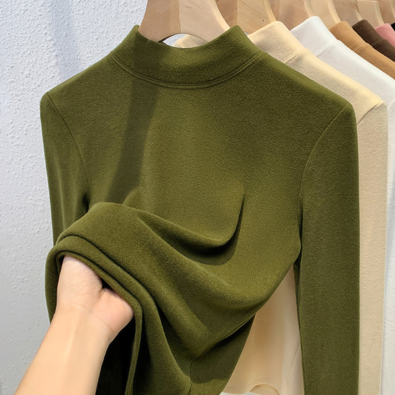 양면 독일산 벨벳 이너웨어 여성용 2025 신상 기본 라운드넥 기모 긴팔 보온 이너 탄력성 좋은 상의