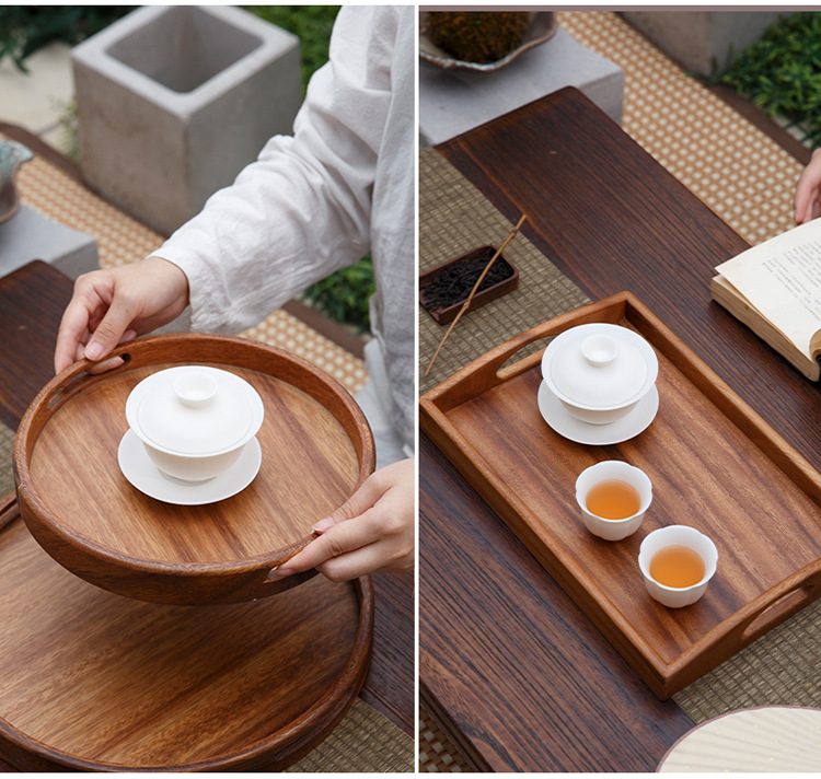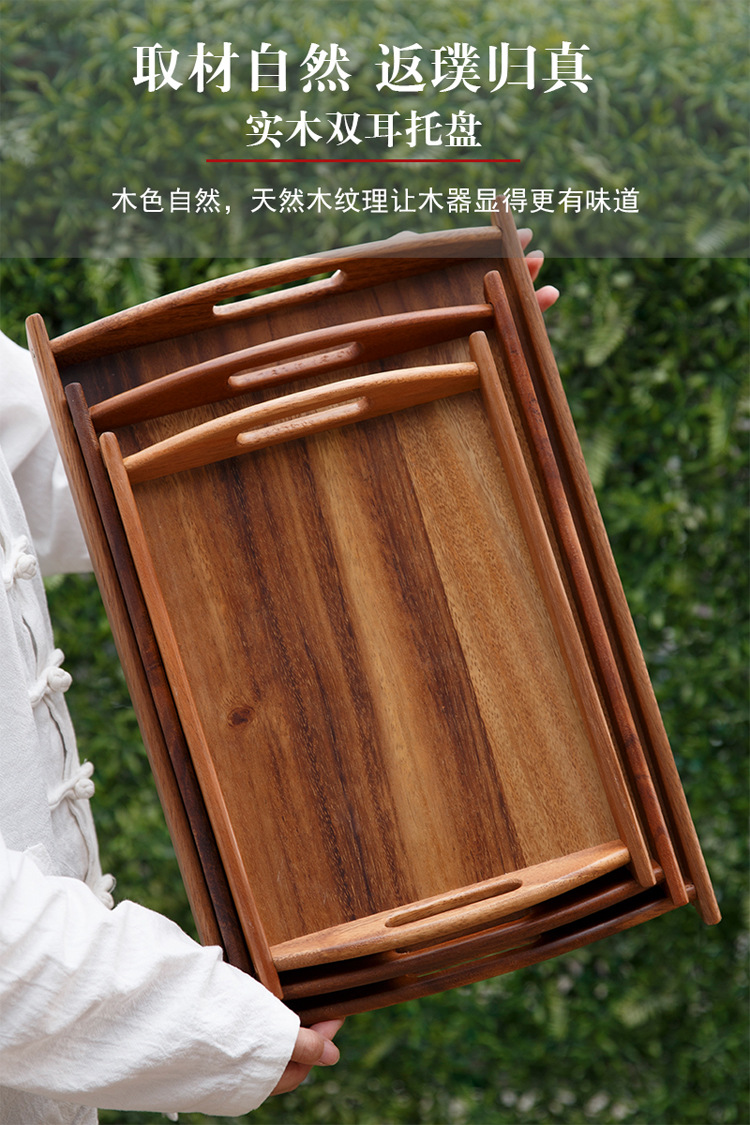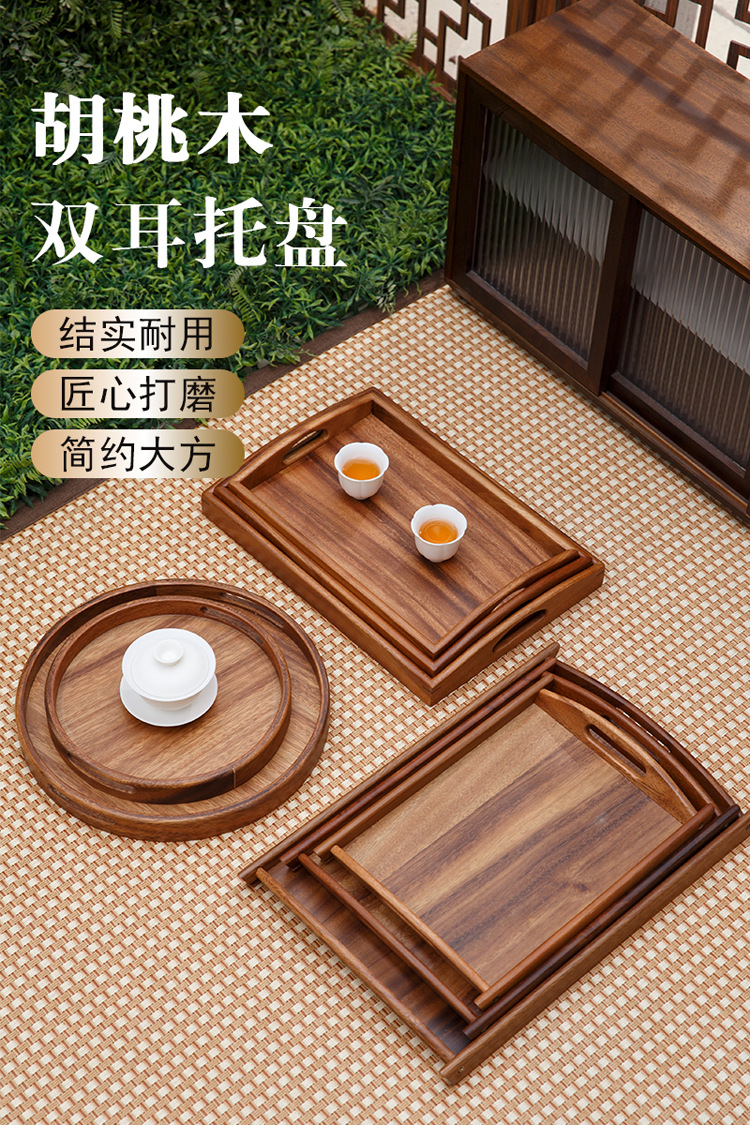 호두나무 양손잡이 트레이 일본식 나무 차 받침대 간식 트레이 원목 커피 트레이스토어 가기