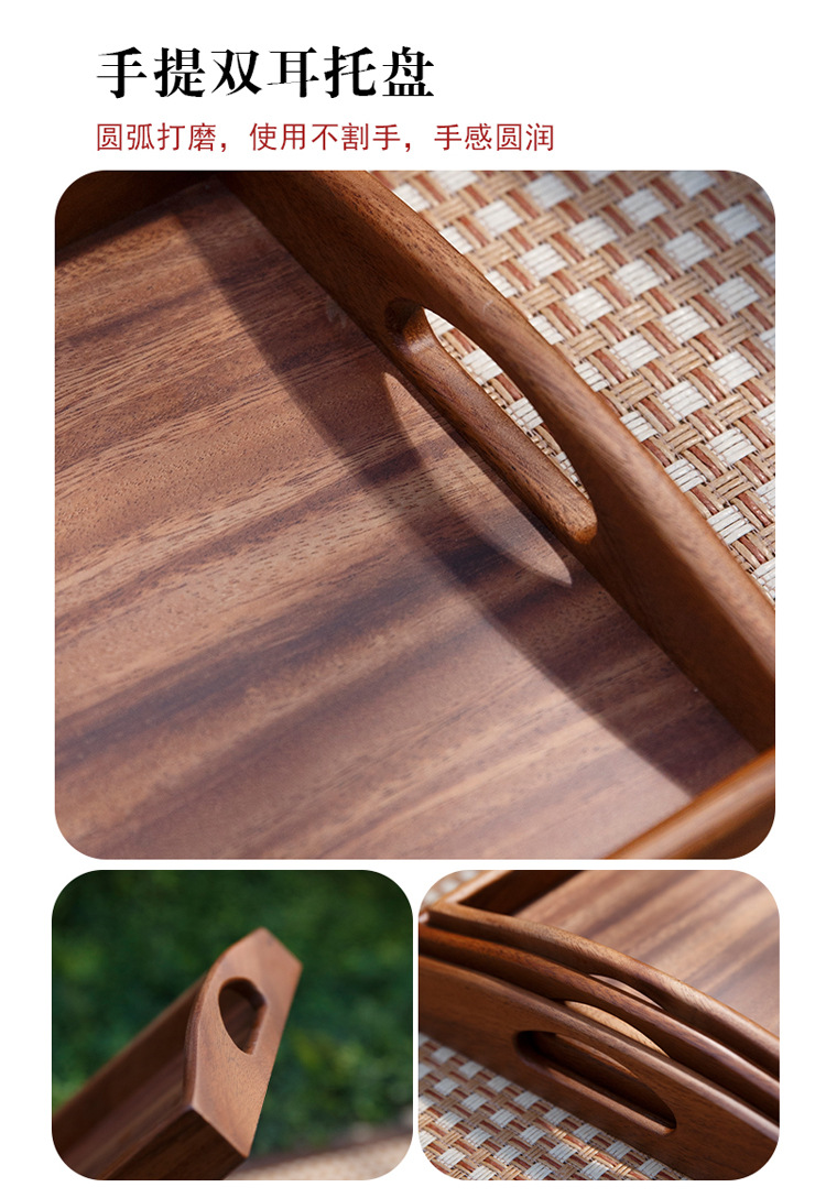 호두나무 양손잡이 트레이 일본식 나무 차 받침대 간식 트레이 원목 커피 트레이