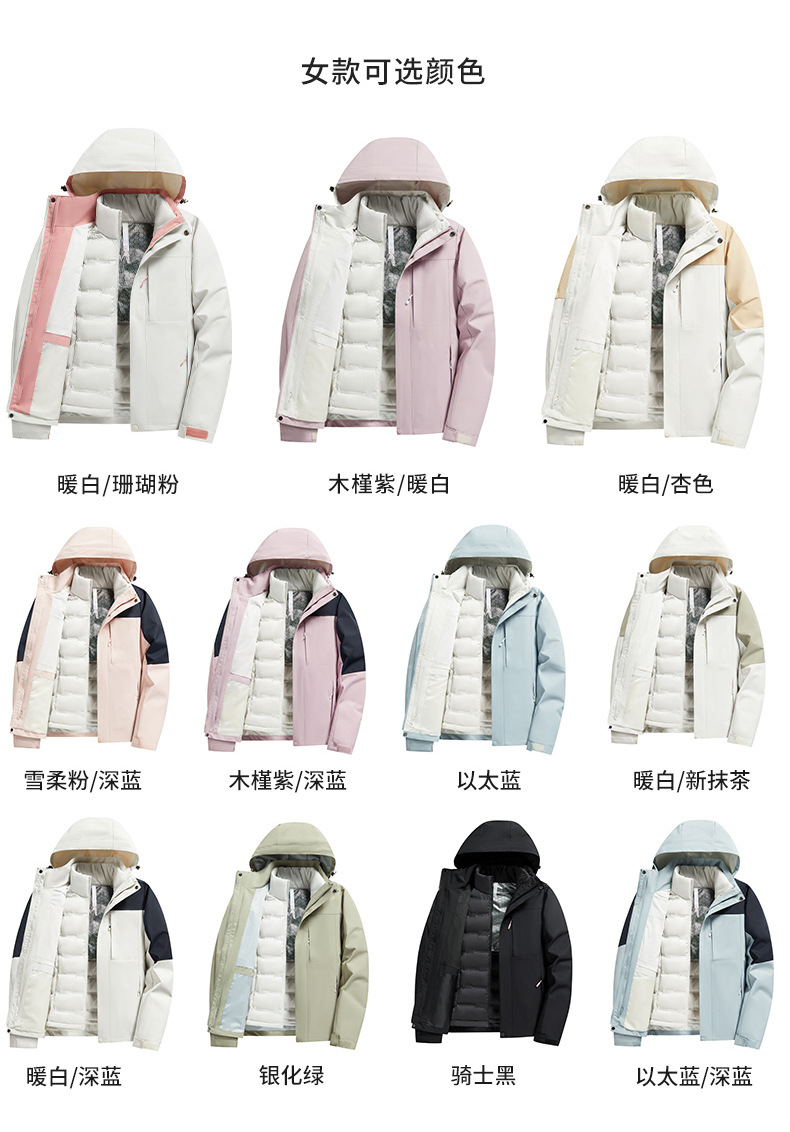 새로운 3 대 1 다운 재킷 여성의 탈착식 2 피스 야외 따뜻한 재킷 남성 커플 등산 세트스토어 가기