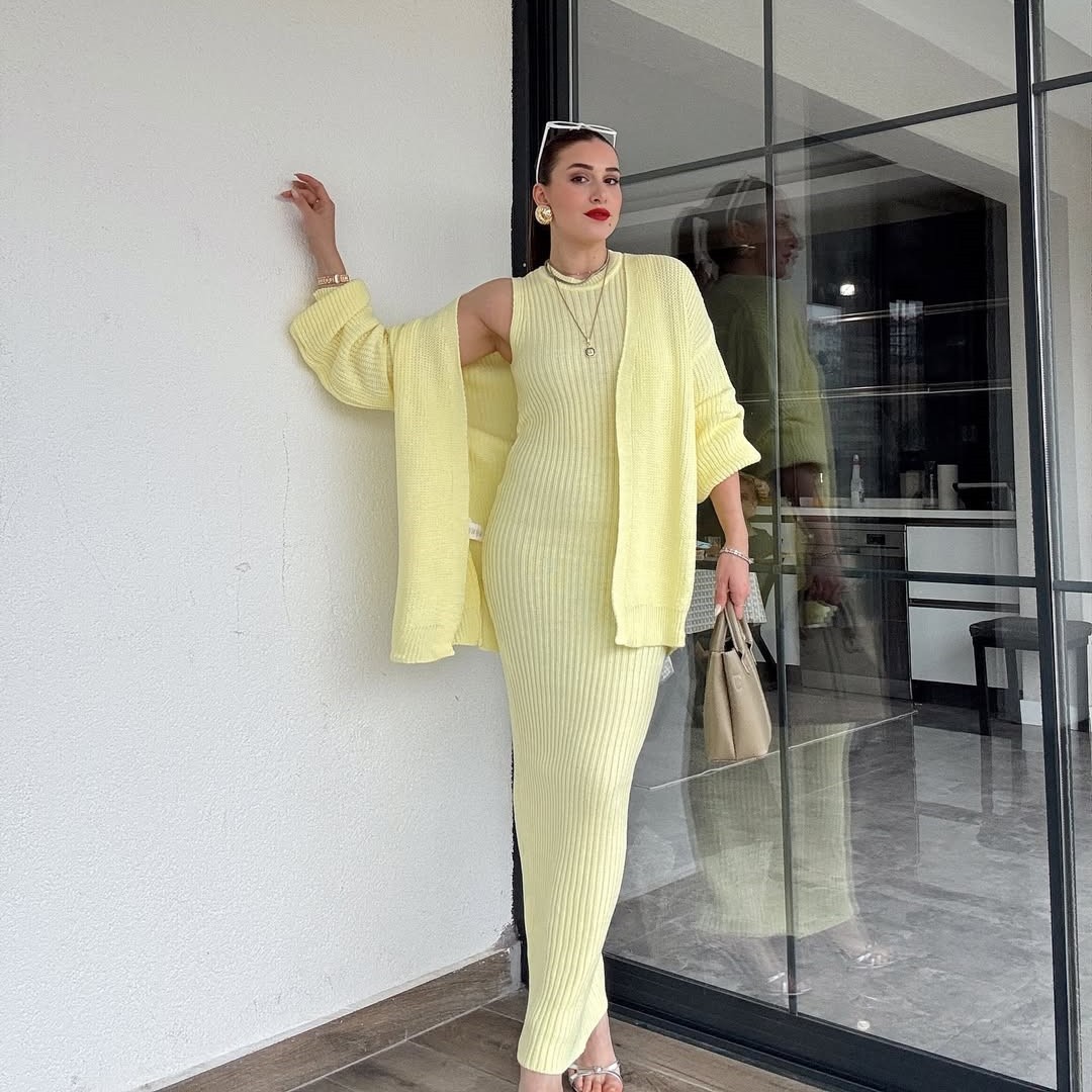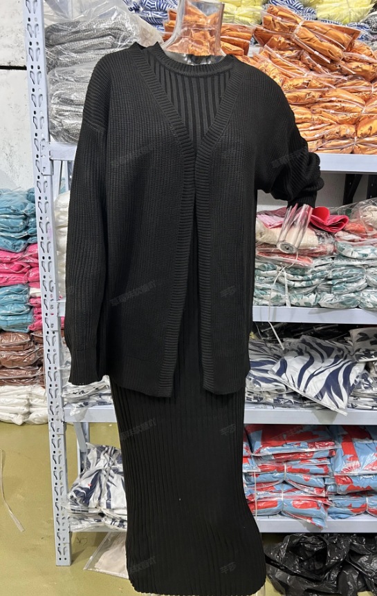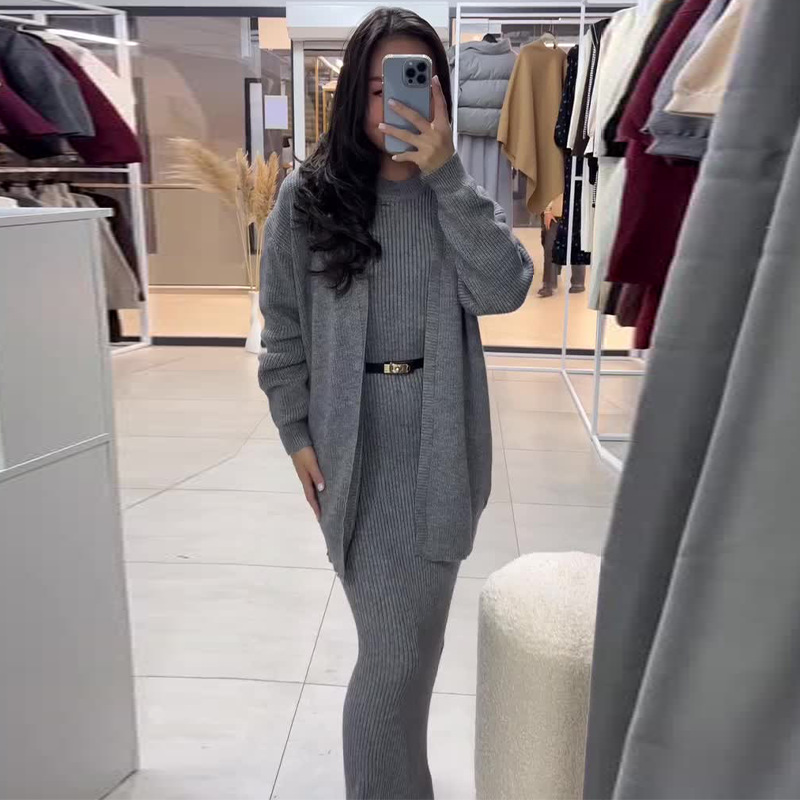 2024 가을 새로운 유럽과 미국 아마존 국경 간 무역 패션 핫 스타일 여성용 레이지 스타일 스웨터와 롱 스커트 정장스토어 가기