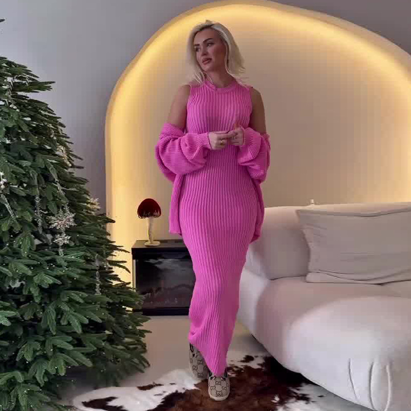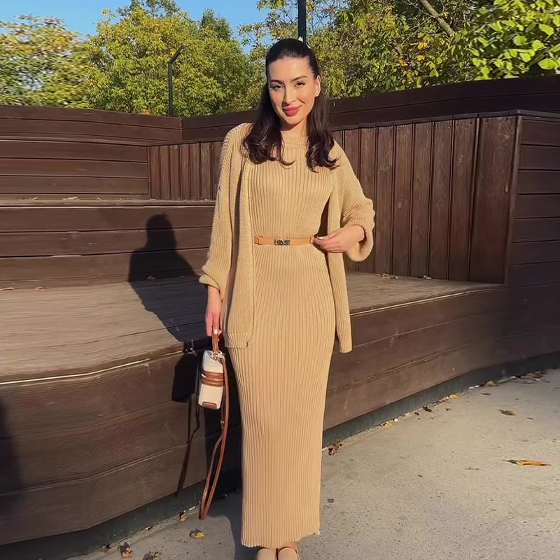 2024 가을 새로운 유럽과 미국 아마존 국경 간 무역 패션 핫 스타일 여성용 레이지 스타일 스웨터와 롱 스커트 정장