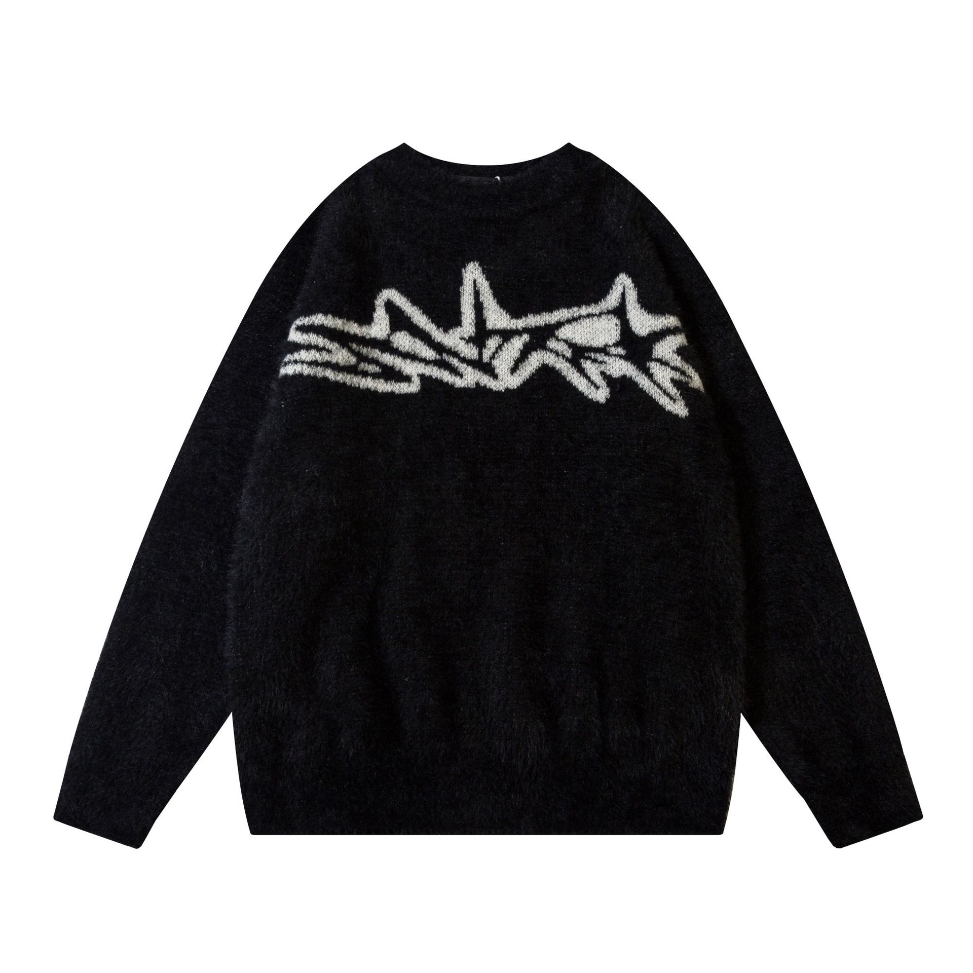 Jiayiku 남성 아메리칸 레트로 사슴 플러시 두꺼운 스웨터 스웨터 새로운 레트로 자카드 라운드 넥 바닥 셔츠