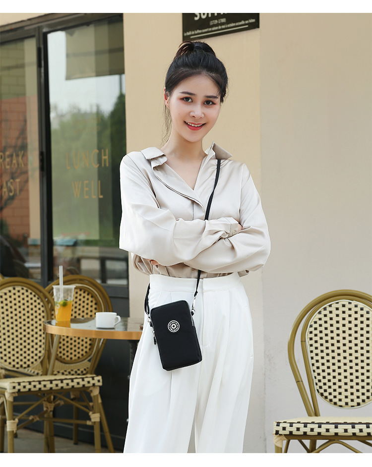 간단한 단색 크로스 바디 폰 가방 동전 지갑 카드 홀더 적합한 스트랩 가방 여성용 숄더백 수직 지갑 더블 레이어
