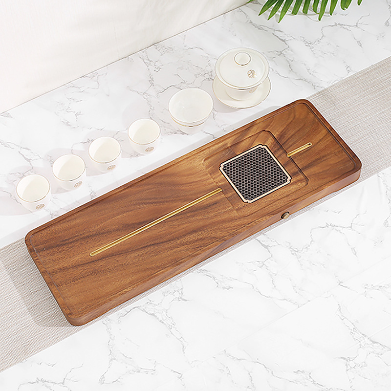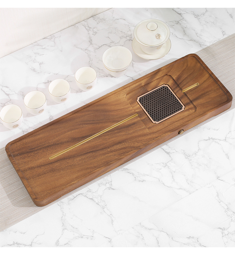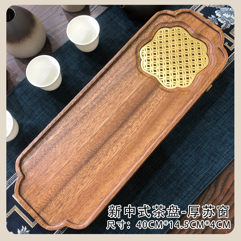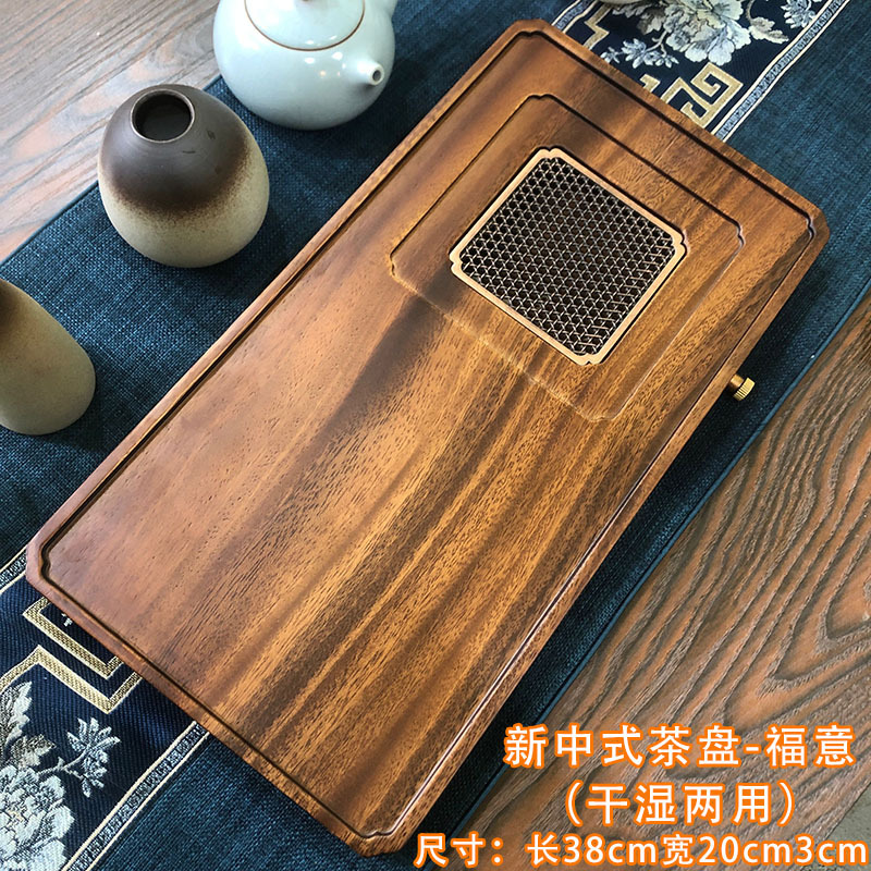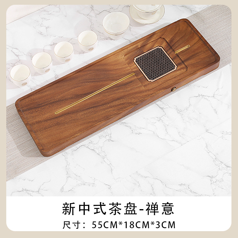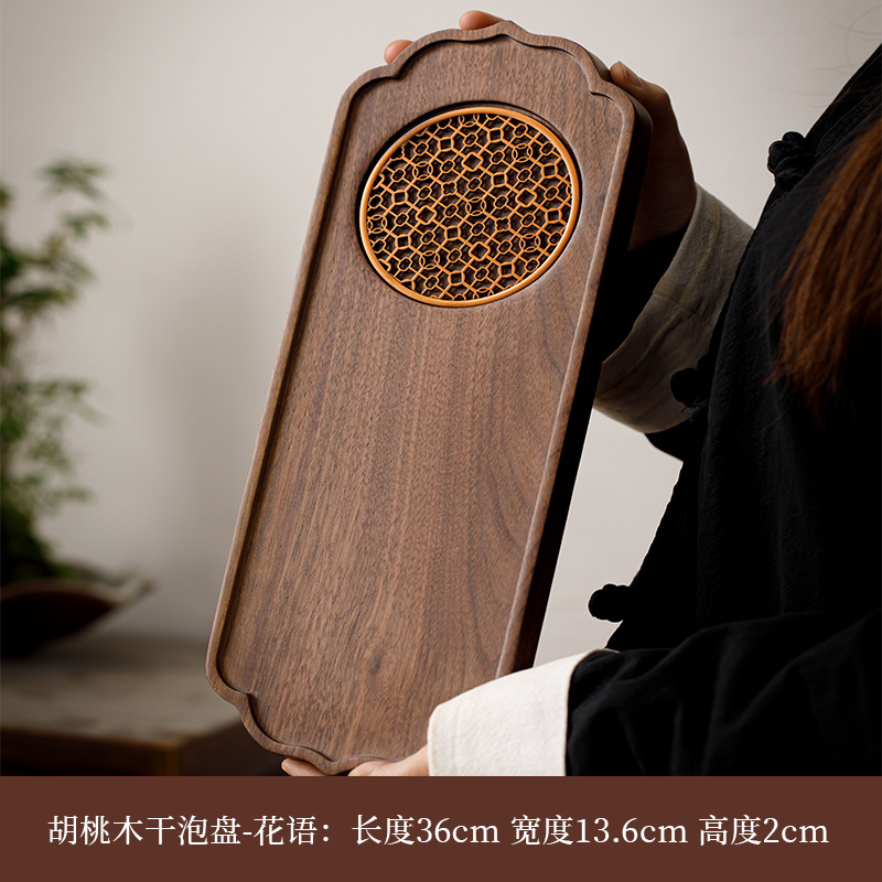 전체 단단한 나무 차 트레이 가정용 새로운 중국 호두 마른 차 트레이 티 테이블 저장 및 배수 간단한 차 바다 작은 트레이