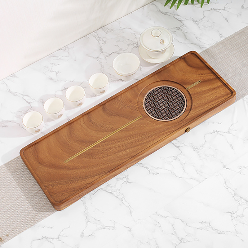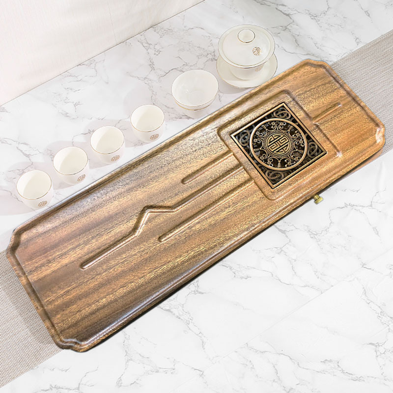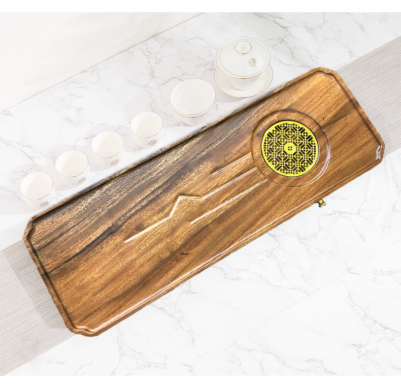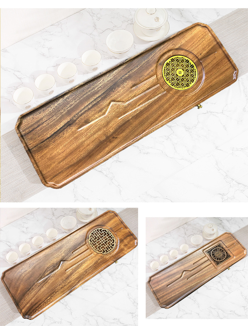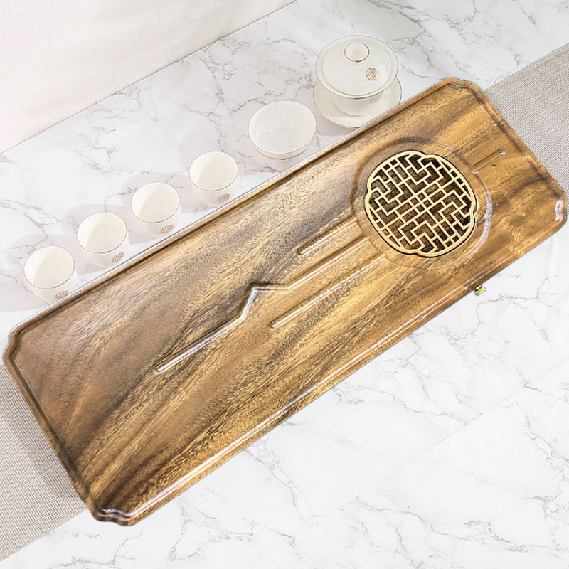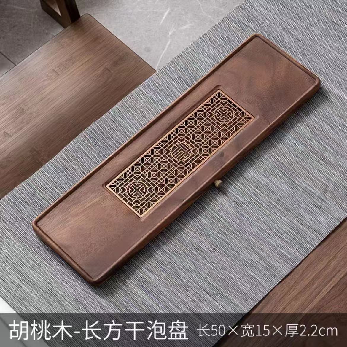 전체 단단한 나무 차 트레이 가정용 새로운 중국 호두 마른 차 트레이 티 테이블 저장 및 배수 간단한 차 바다 작은 트레이