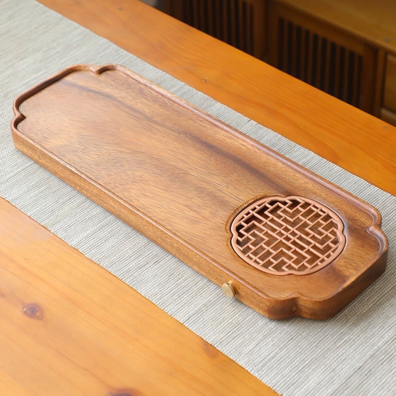 • 호두 직사각형 차 트레이-선 홍시