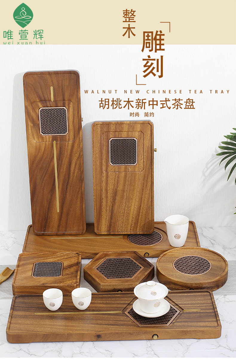 전체 단단한 나무 차 트레이 가정용 새로운 중국 호두 마른 차 트레이 티 테이블 저장 및 배수 간단한 차 바다 작은 트레이스토어 가기