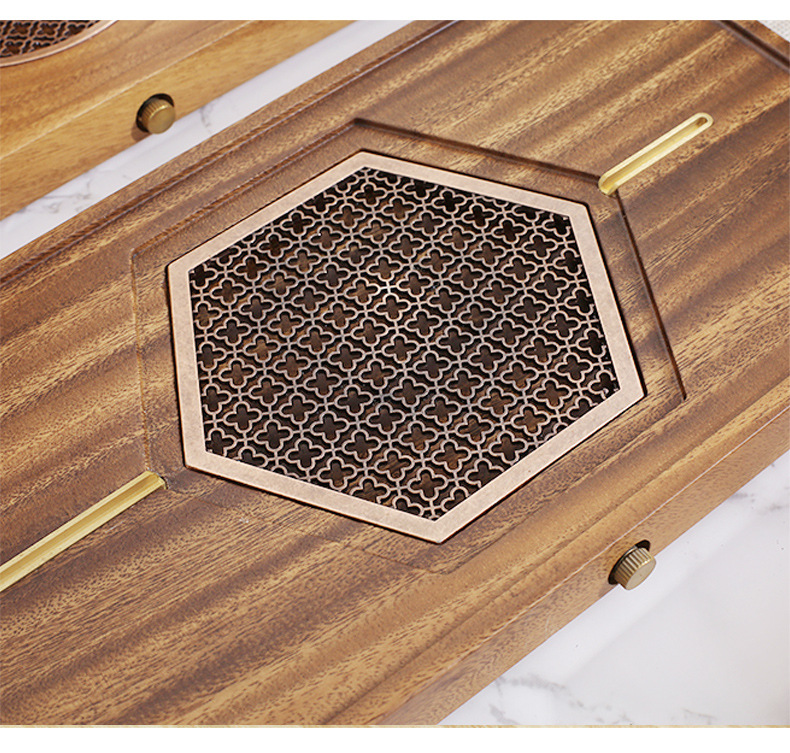 • 호두 직사각형 차 트레이 사각형 필터-선