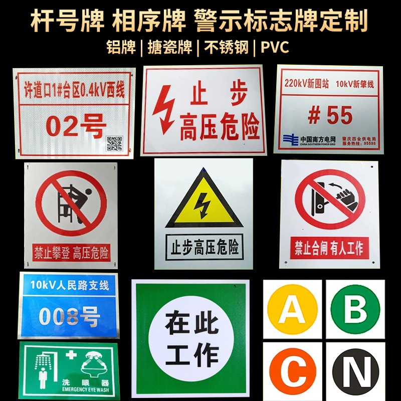 전력 표지판, 철탑 표지판, 전력 기둥 번호판, 라인 번호판, 알루미늄 스테인리스 부식 방지 상순위 표지판, 경고 표지판스토어 가기