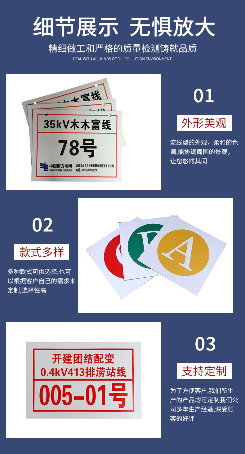 전력 표지판, 철탑 표지판, 전력 기둥 번호판, 라인 번호판, 알루미늄 스테인리스 부식 방지 상순위 표지판, 경고 표지판