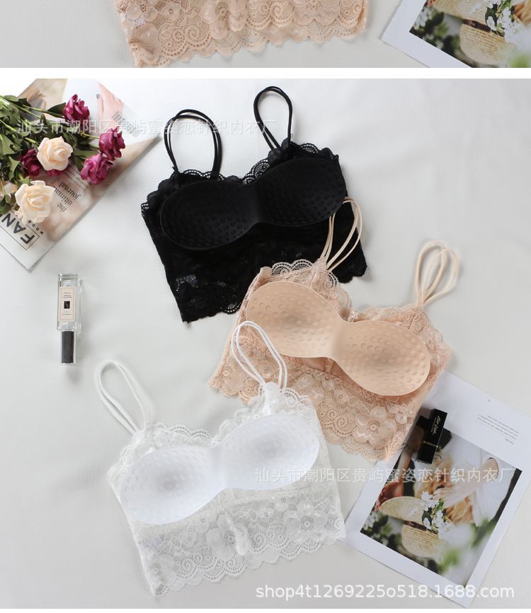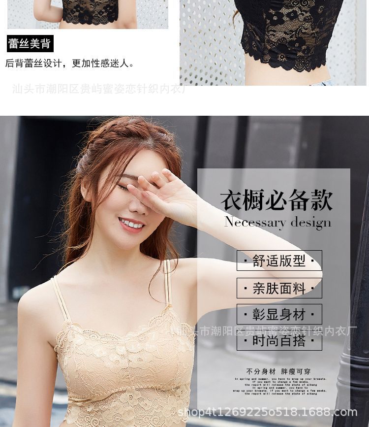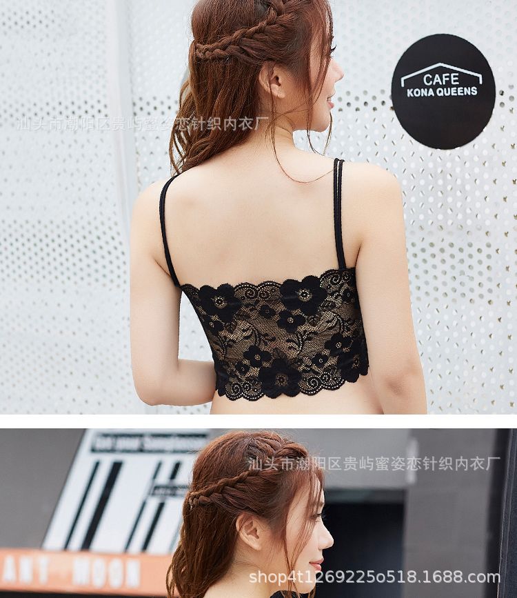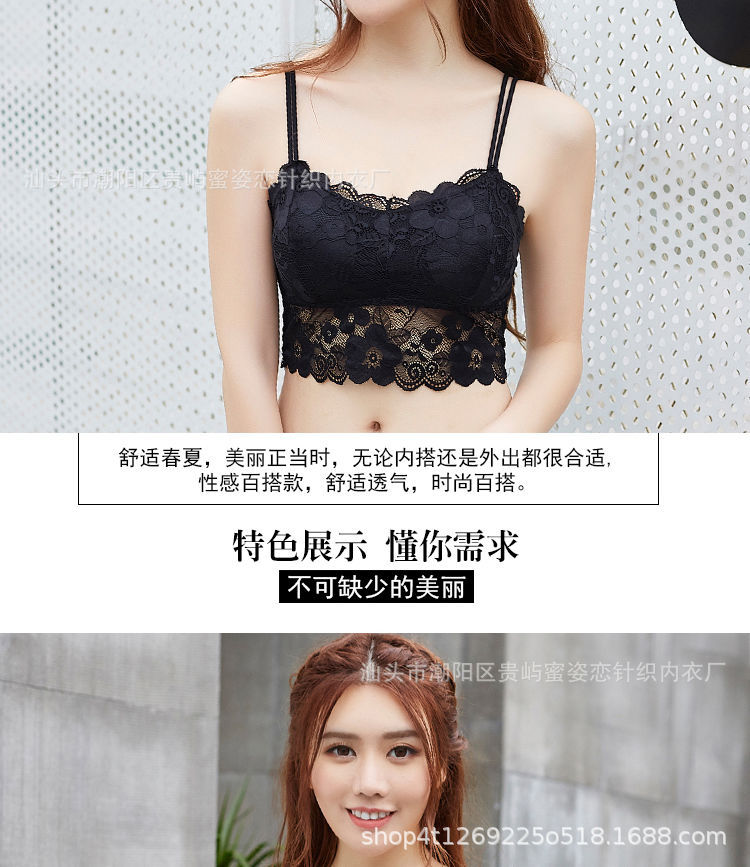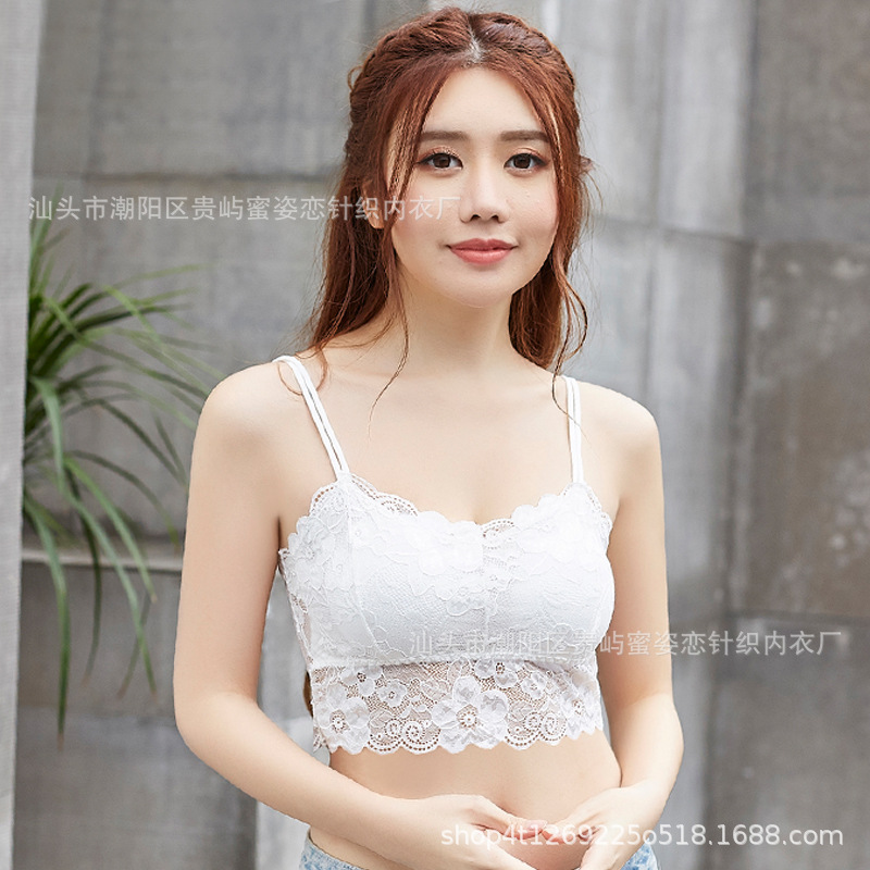 여름 레이스 섹시한 바닥 셔츠 짧은 캐미솔 여성의 안티 노출 가슴 패드 포장 가슴 튜브 탑 학생스토어 가기