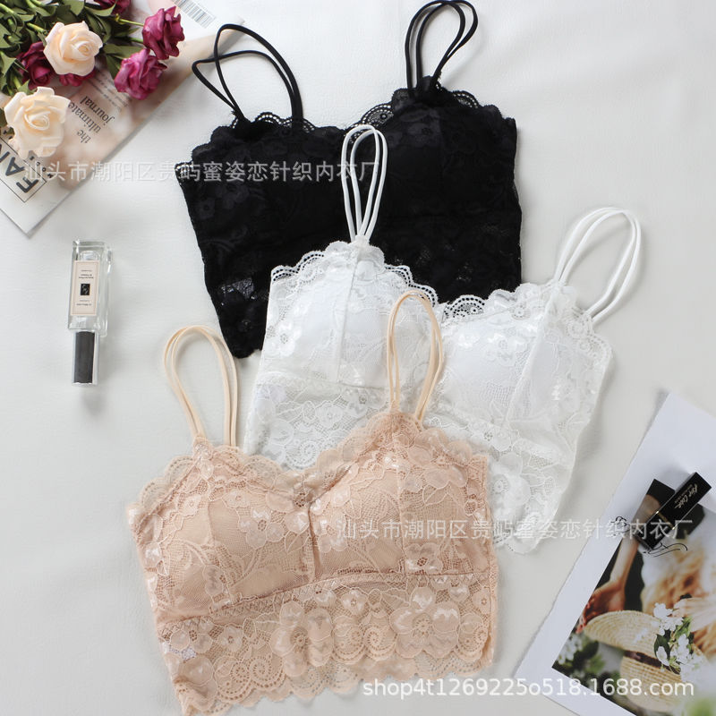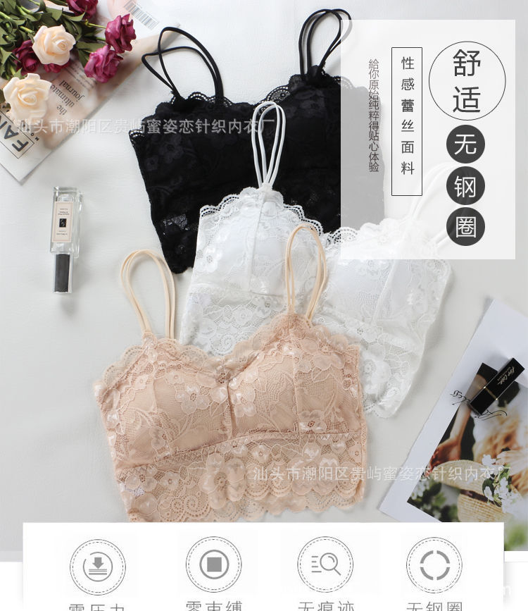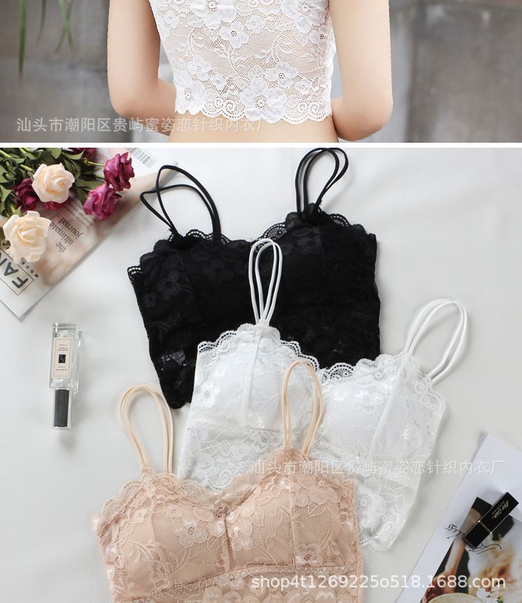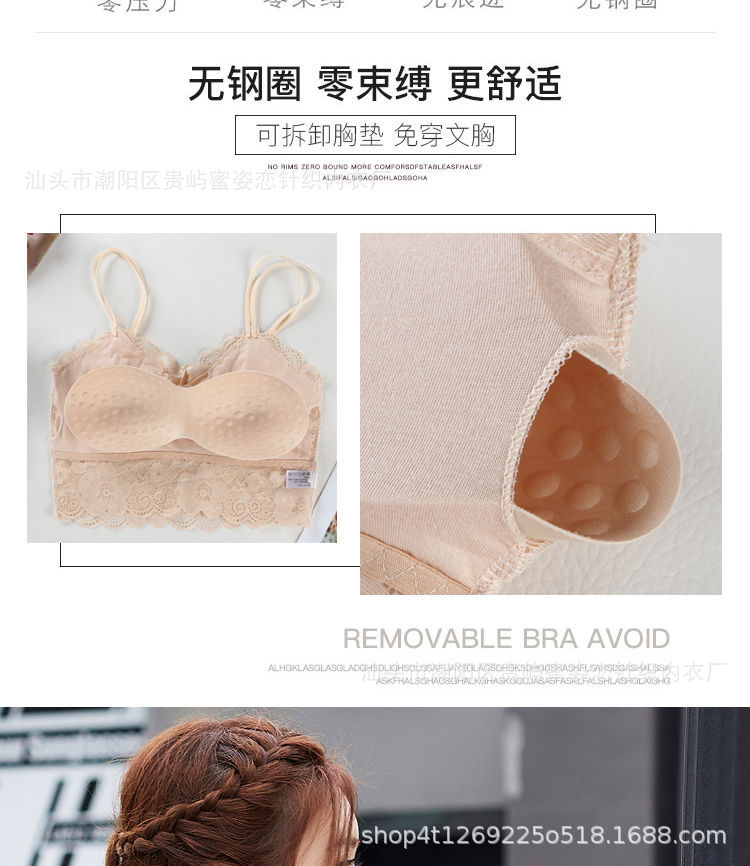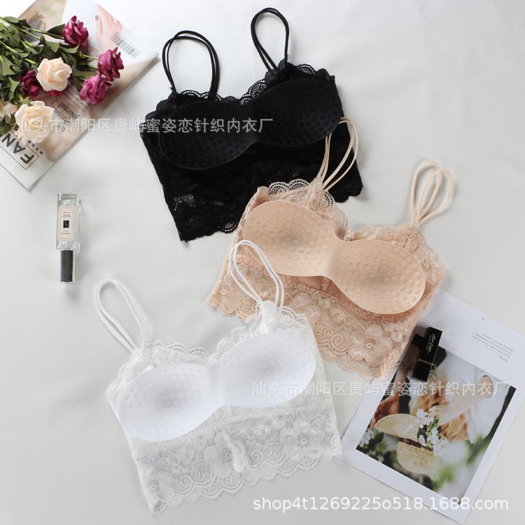 여름 레이스 섹시한 바닥 셔츠 짧은 캐미솔 여성의 안티 노출 가슴 패드 포장 가슴 튜브 탑 학생스토어 가기