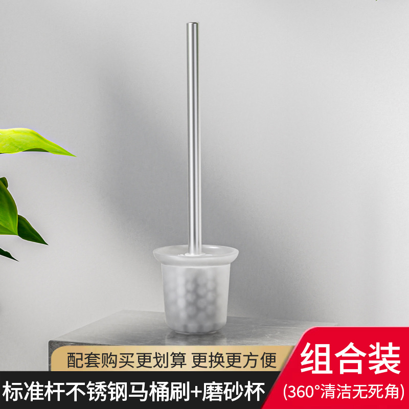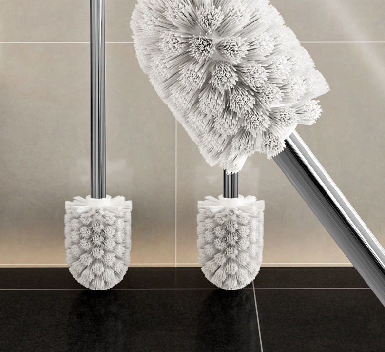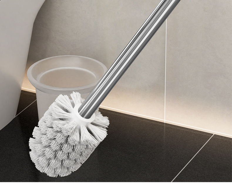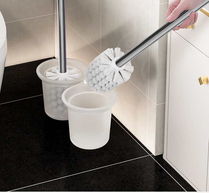 • 흰색 브러시 헤드가있는 서리 유리 + 스테인레스 스틸 밝은 화장실 브러시