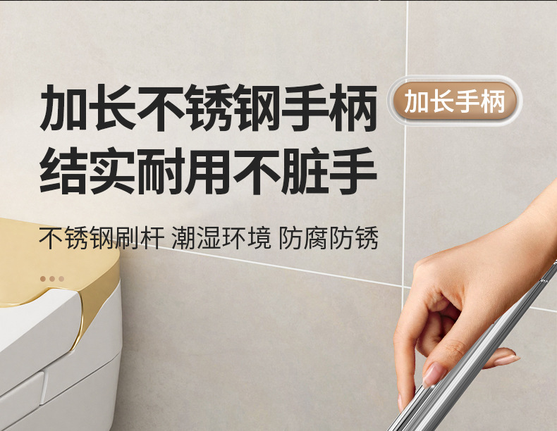 사각지대 없는 변기솔, 일회용 화장실 변기솔, 스테인리스 긴 손잡이, 교체 가능한 브러시 헤드, 연장형