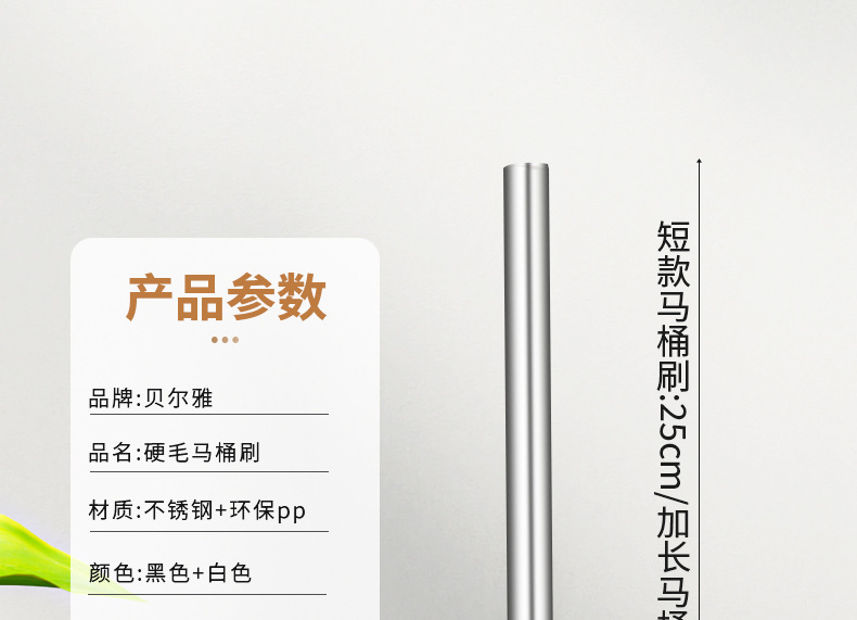 • [표준 막대 25cm] 스테인레스 스틸 밝은 막대 + 1 블랙 브러시 헤드