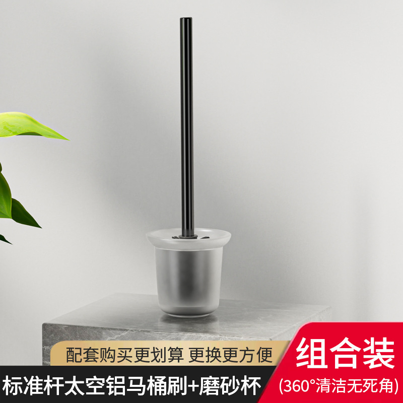 • 검은 색 브러시 헤드가있는 서리 유리 + 공간 알루미늄 검은 색 화장실 브러시