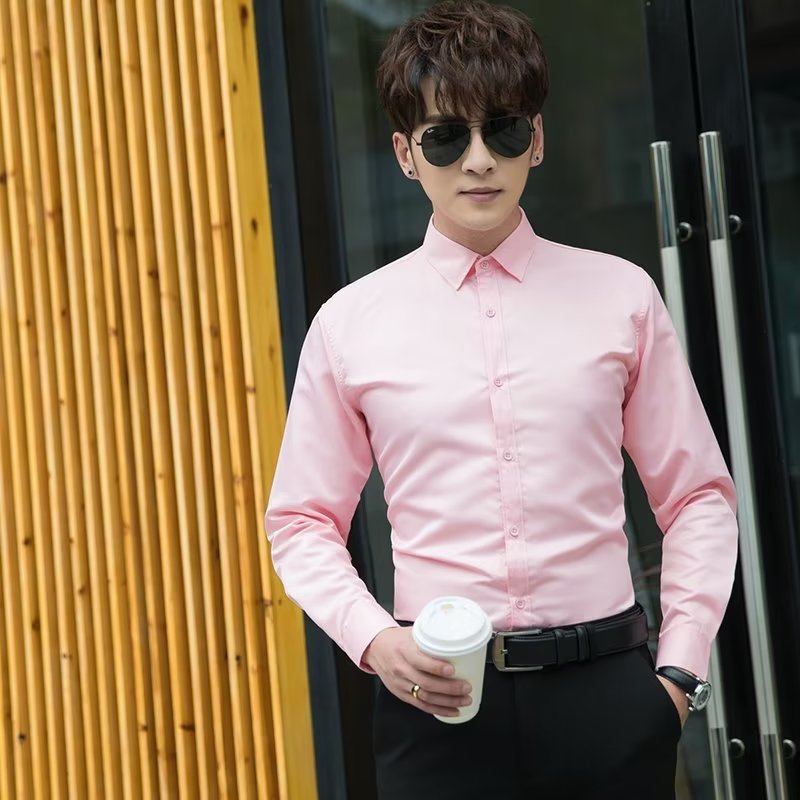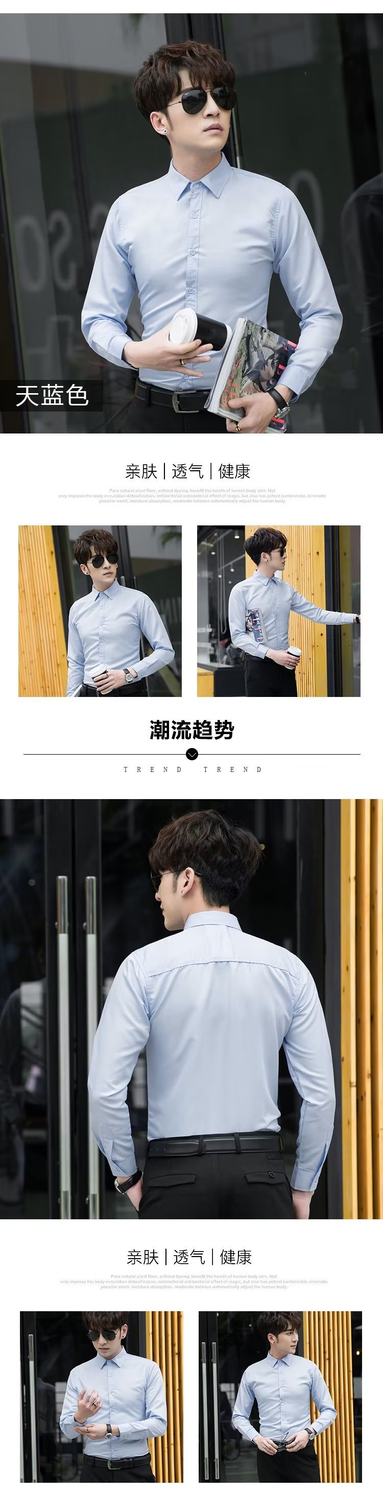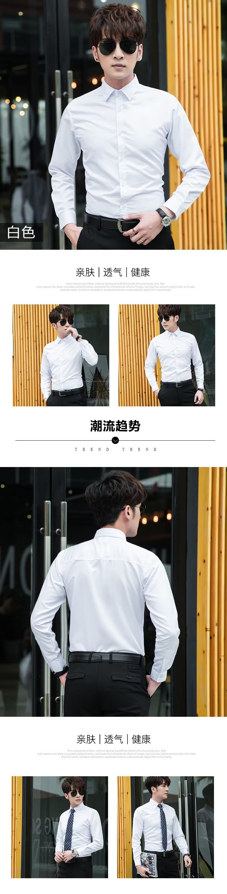 봄과 가을 남성 긴팔 셔츠 한국식 슬림 핏 전문 정장 착용 화이트 셔츠 비즈니스 캐주얼 셔츠 잘 생긴 올매치스토어 가기