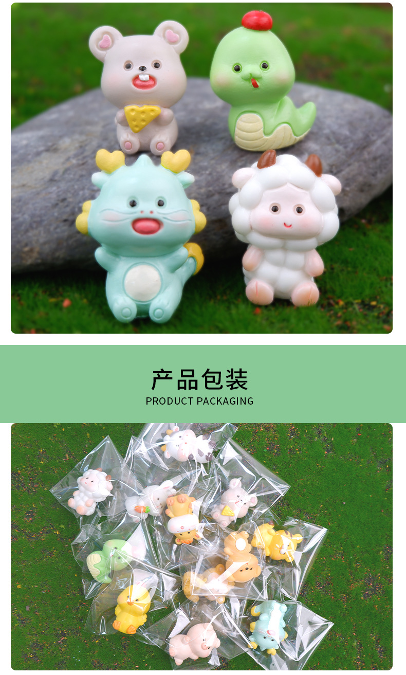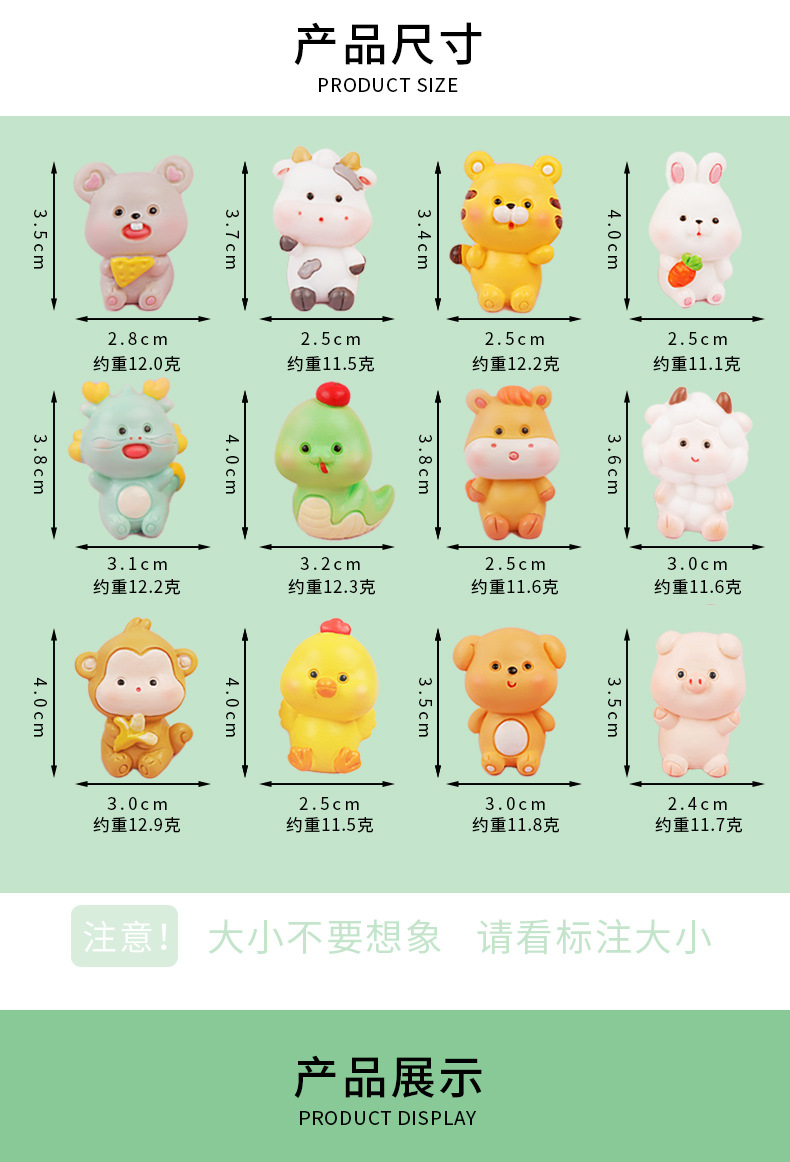 12 조디악 수지 작은 장식품 마이크로 풍경 창조적 인 데스크탑 장식품 동물 중국 공예 자동차 펜던트 색상