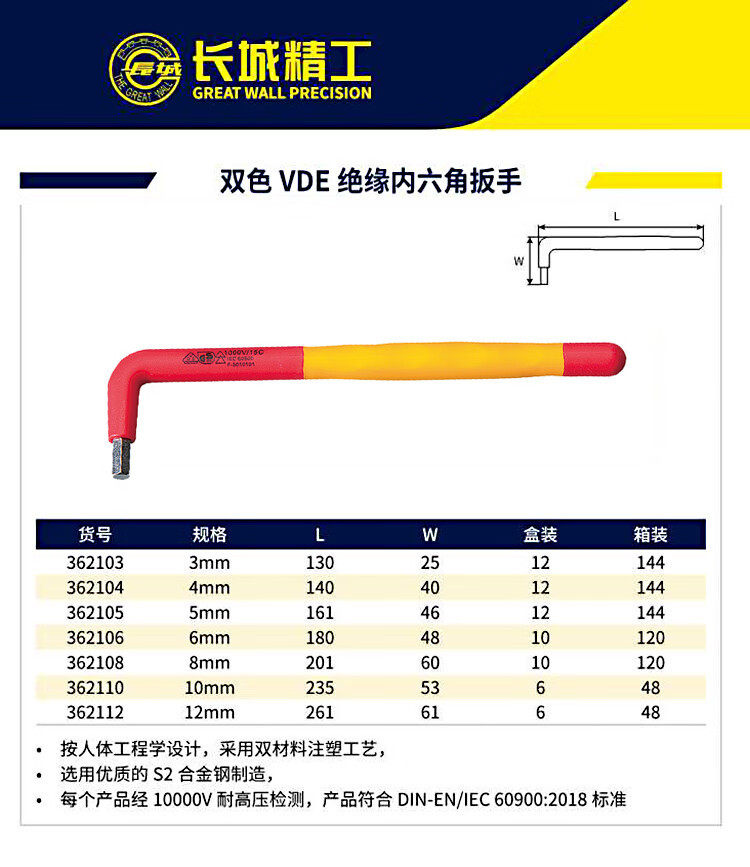 만리장성 2 색 VDE 절연 육각 렌치 4mm [362104]]스토어 가기
