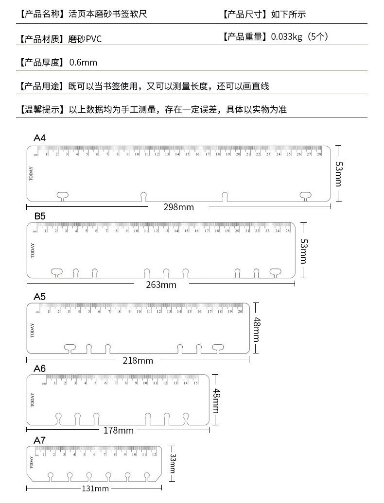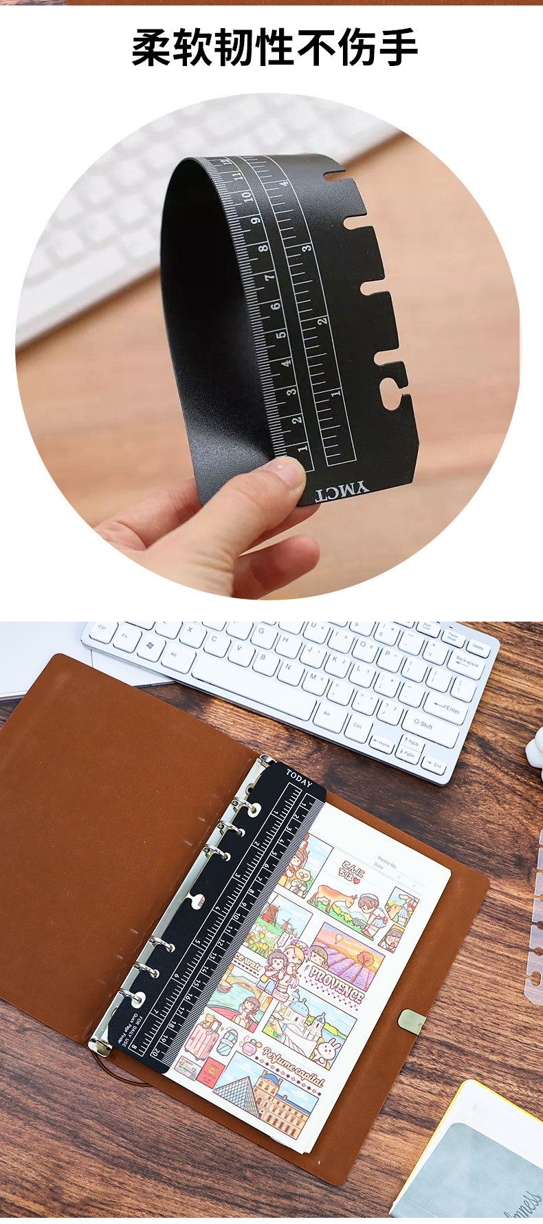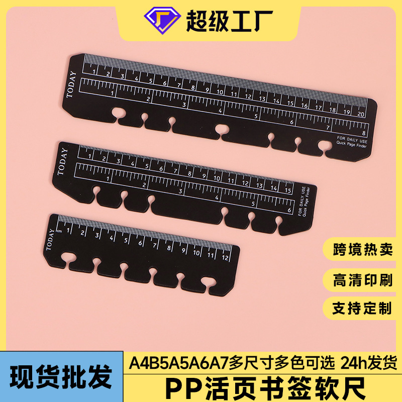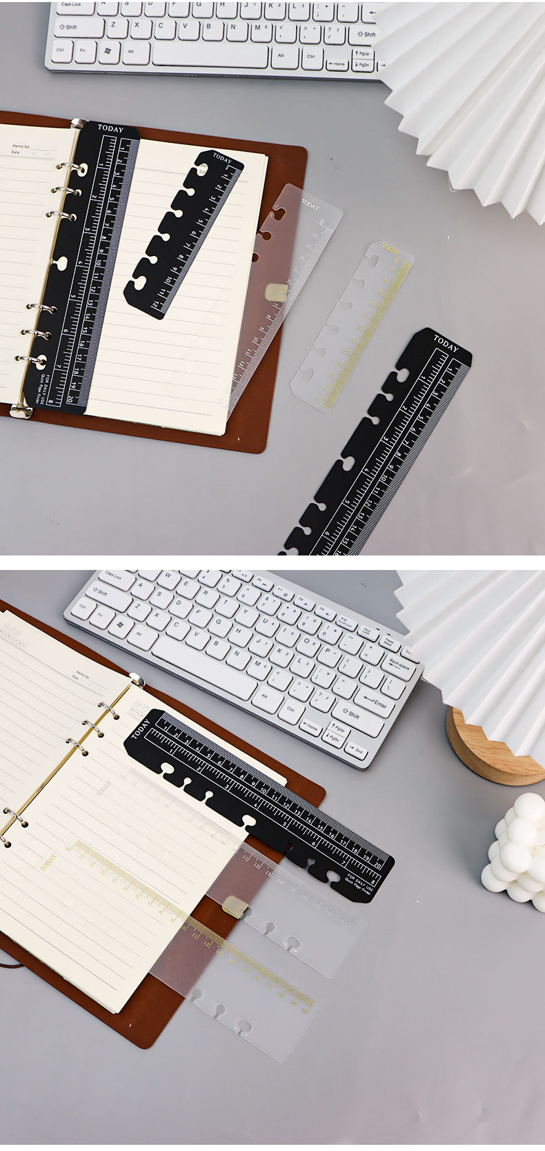 재고 A4B5A5A6A7 골드 및 실버 느슨한 잎 노트북 북마크 스케일 소프트 통치자 투명 PP 프로스트 파티션 보드