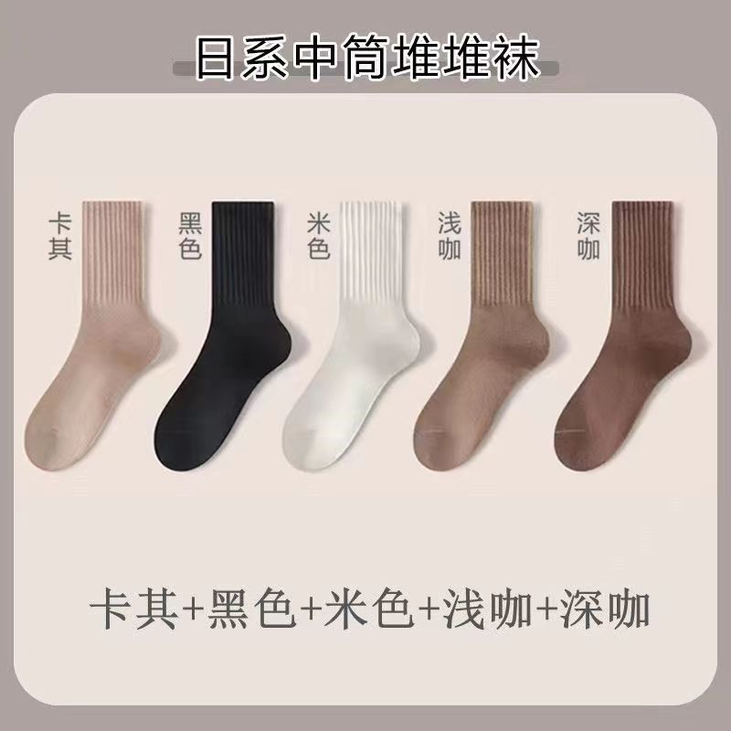 Zhuji 양말 여성용 중간 길이 양말 가을 땀 흡수 및 통기성 트렌디하고 다재다능한 단색 스포츠 커플 양말스토어 가기