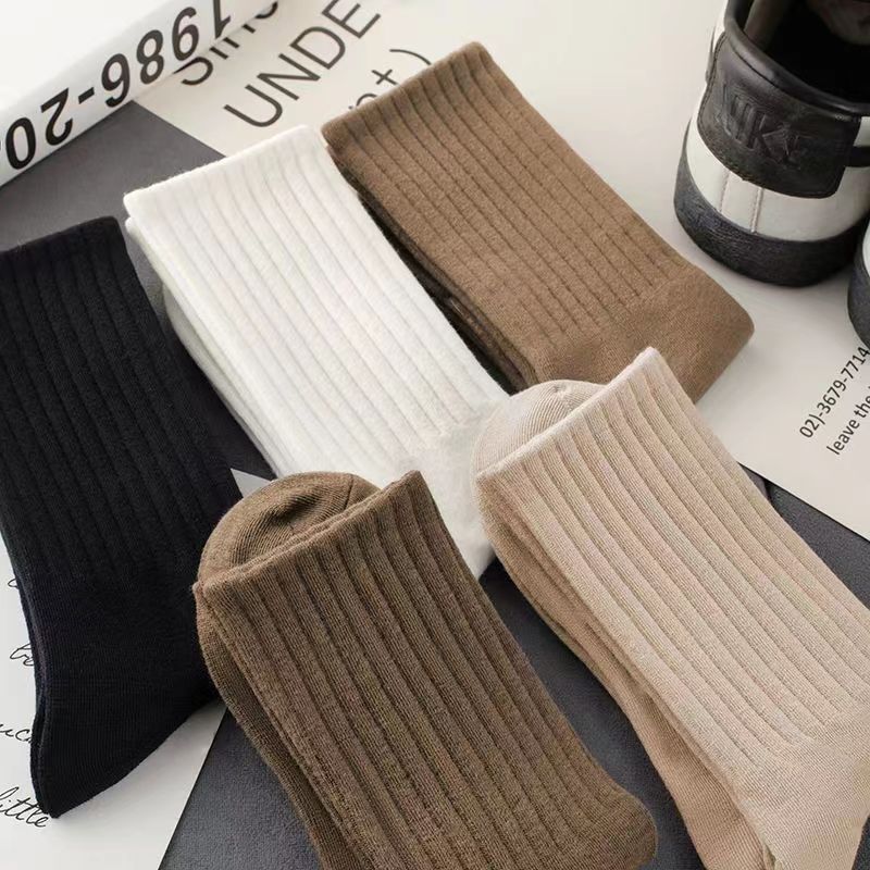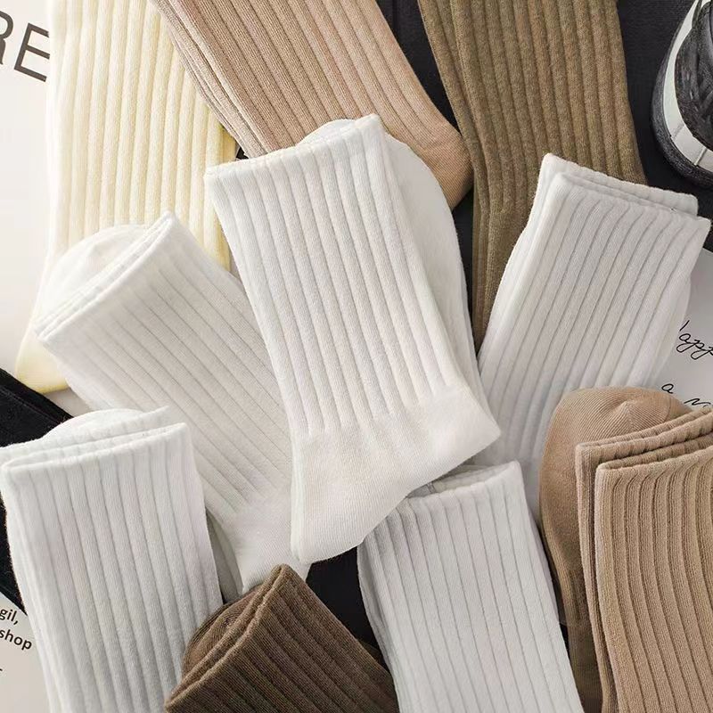 Zhuji 양말 여성용 중간 길이 양말 가을 땀 흡수 및 통기성 트렌디하고 다재다능한 단색 스포츠 커플 양말