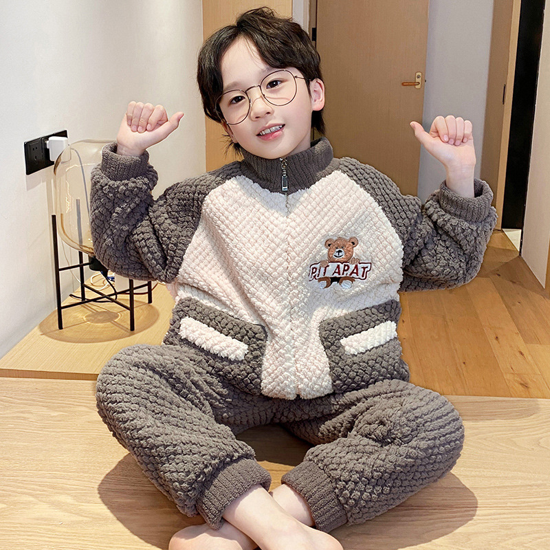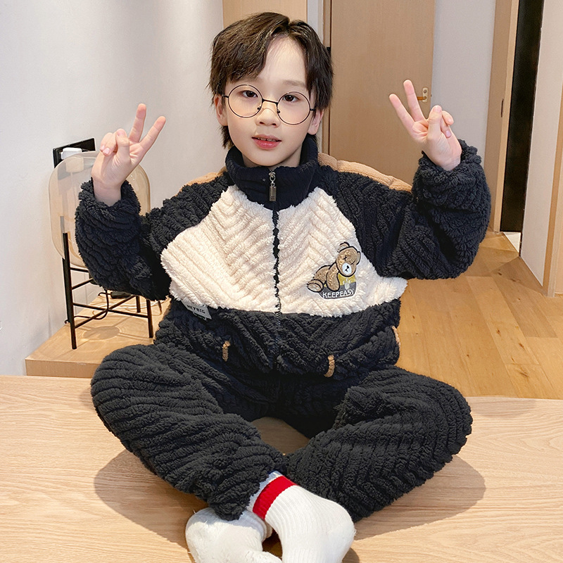 어린이 잠옷 겨울 소년 산호 양털 카디건은 두꺼운 플란넬 소년의 중형 및 대형 어린이 가정복 세트 기모스토어 가기