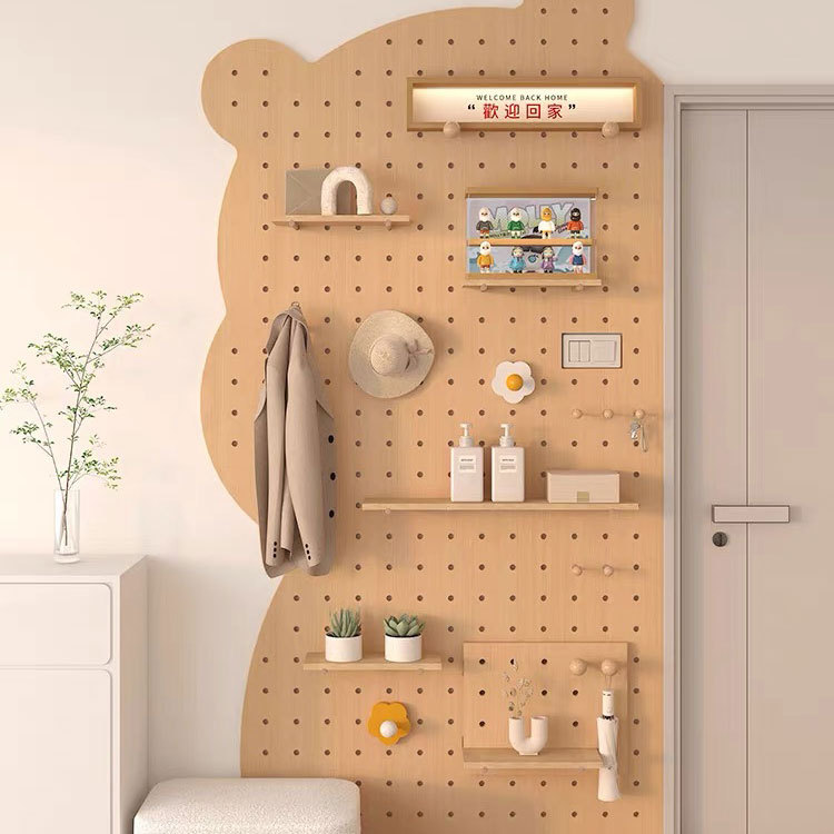 창조적 인 단단한 나무 구멍 보드 벽걸이 스토리지 랙 DIY 스토리지 보드 도어 입구 팬더 홀 보드 스토리지 랙