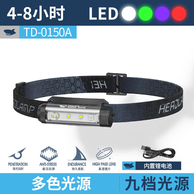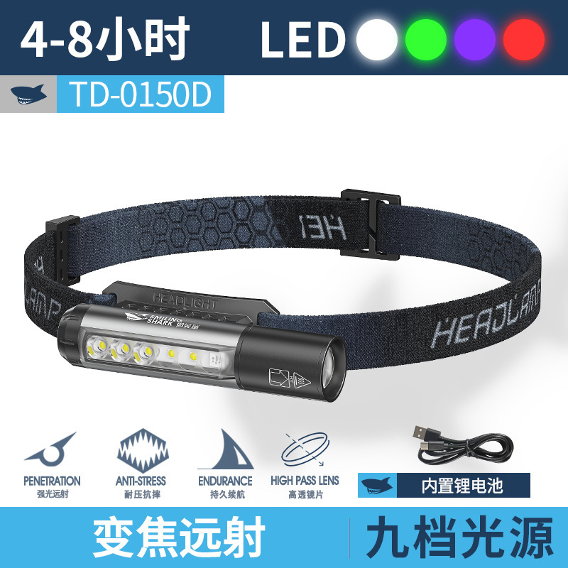 Xiaoxiao 상어 강한 빛 헤드 라이트 다기능 야외 슈퍼 밝은 초점 헤드 장착 야간 낚시 특수 휴대용 손전등 작업 조명