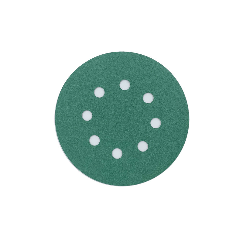 국경 간 인기 판매 5인치 8홀 벨벳 그린 샌드 디스크 샌드 폴리에스테르 필름 워터 샌딩 페이퍼 연마 샌드페이퍼 플로킹 샌드페이퍼