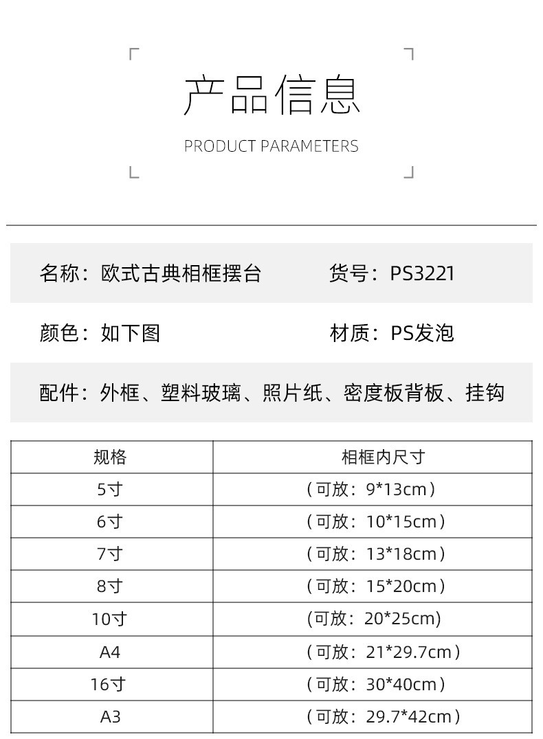 유럽 스타일의 사진 프레임 벽 교수형 사진 프레임 복고풍 사진 프레임 A4 교수형 창조적 인 사진 인쇄 프레임 아트 작품스토어 가기