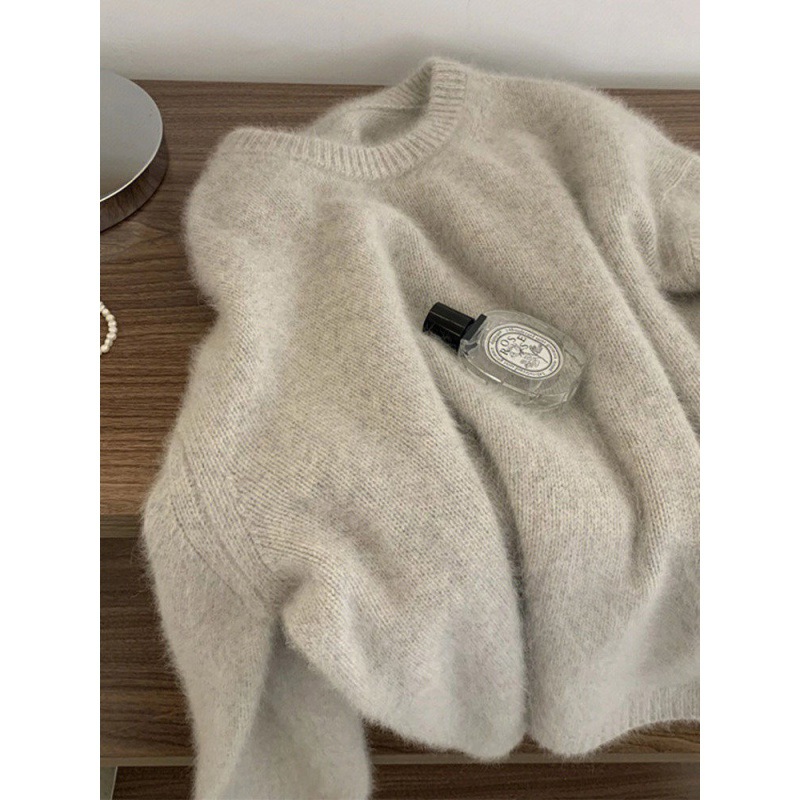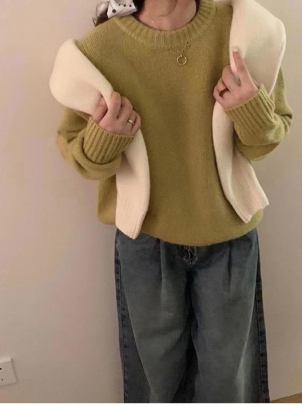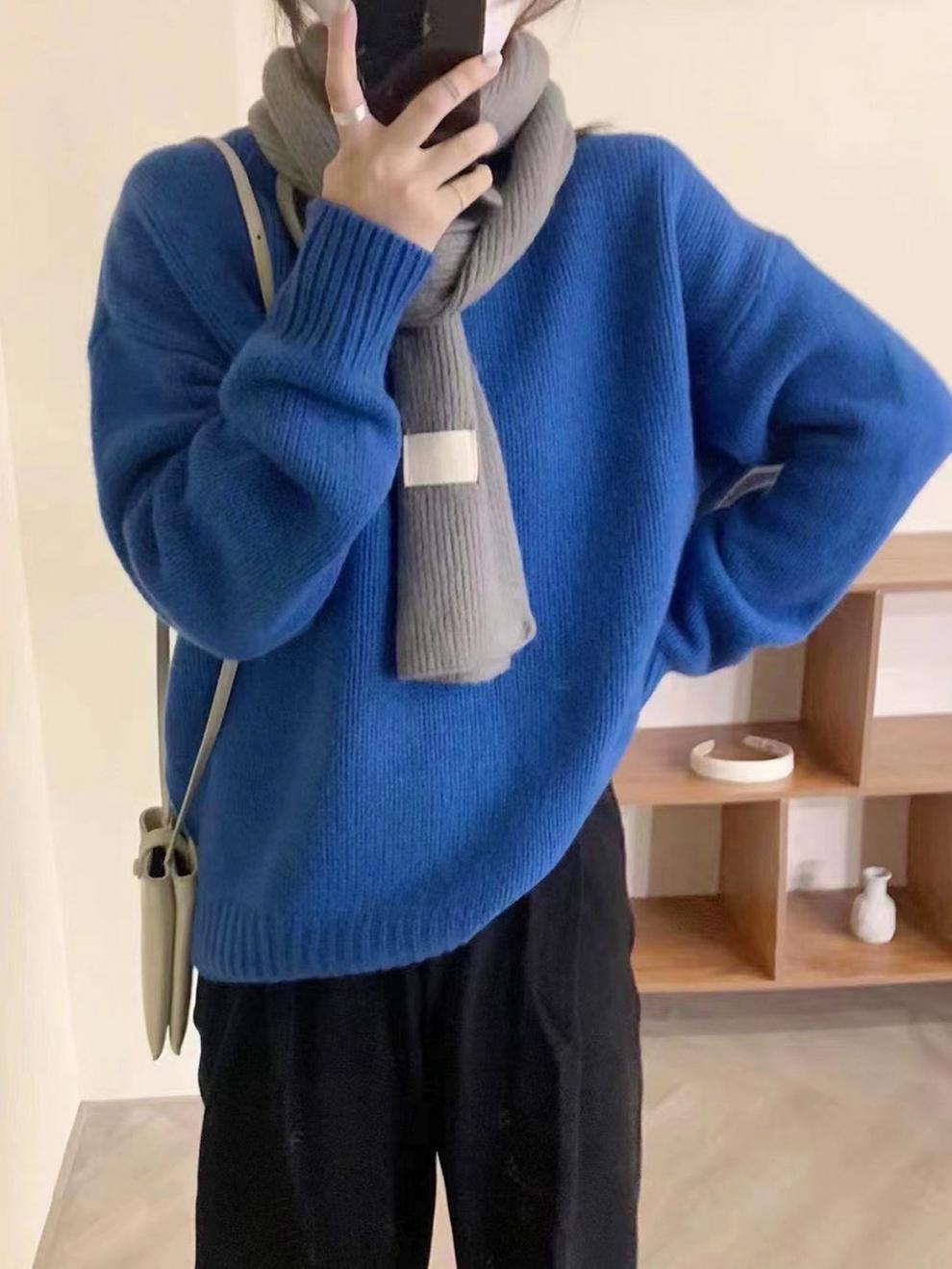 가을과 겨울 2023 여성을위한 한국 둥근 목 울 스웨터 새로운 한국 스타일 느슨한 게으른 스타일 스웨터 두껍게 한 겉옷스토어 가기