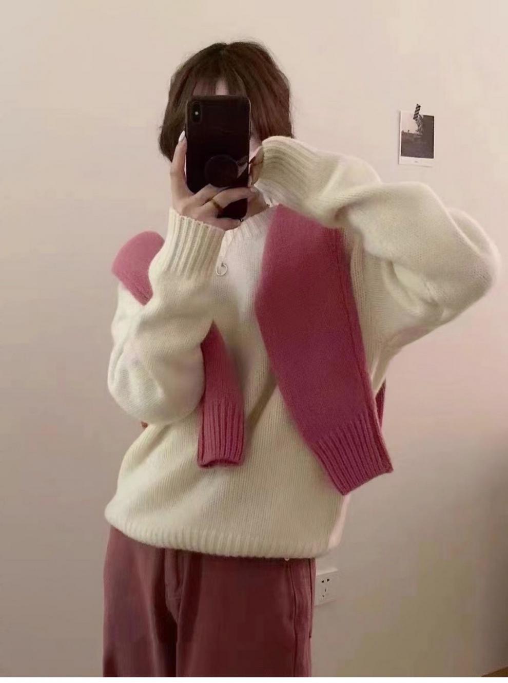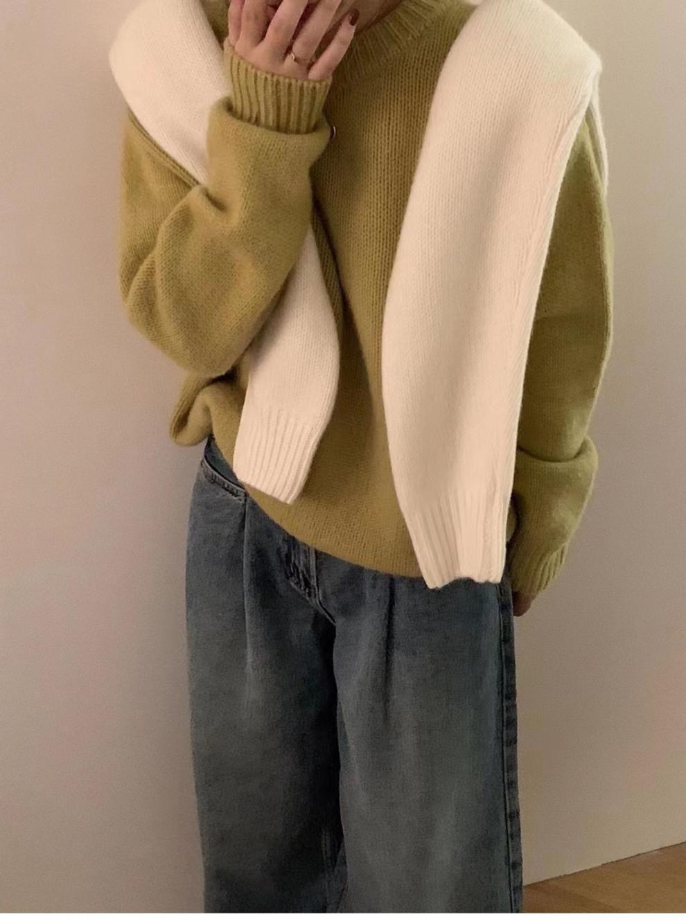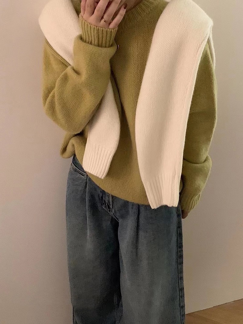 가을과 겨울 2023 여성을위한 한국 둥근 목 울 스웨터 새로운 한국 스타일 느슨한 게으른 스타일 스웨터 두껍게 한 겉옷스토어 가기