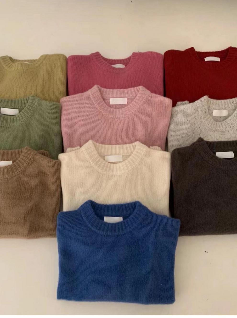가을과 겨울 2023 여성을위한 한국 둥근 목 울 스웨터 새로운 한국 스타일 느슨한 게으른 스타일 스웨터 두껍게 한 겉옷