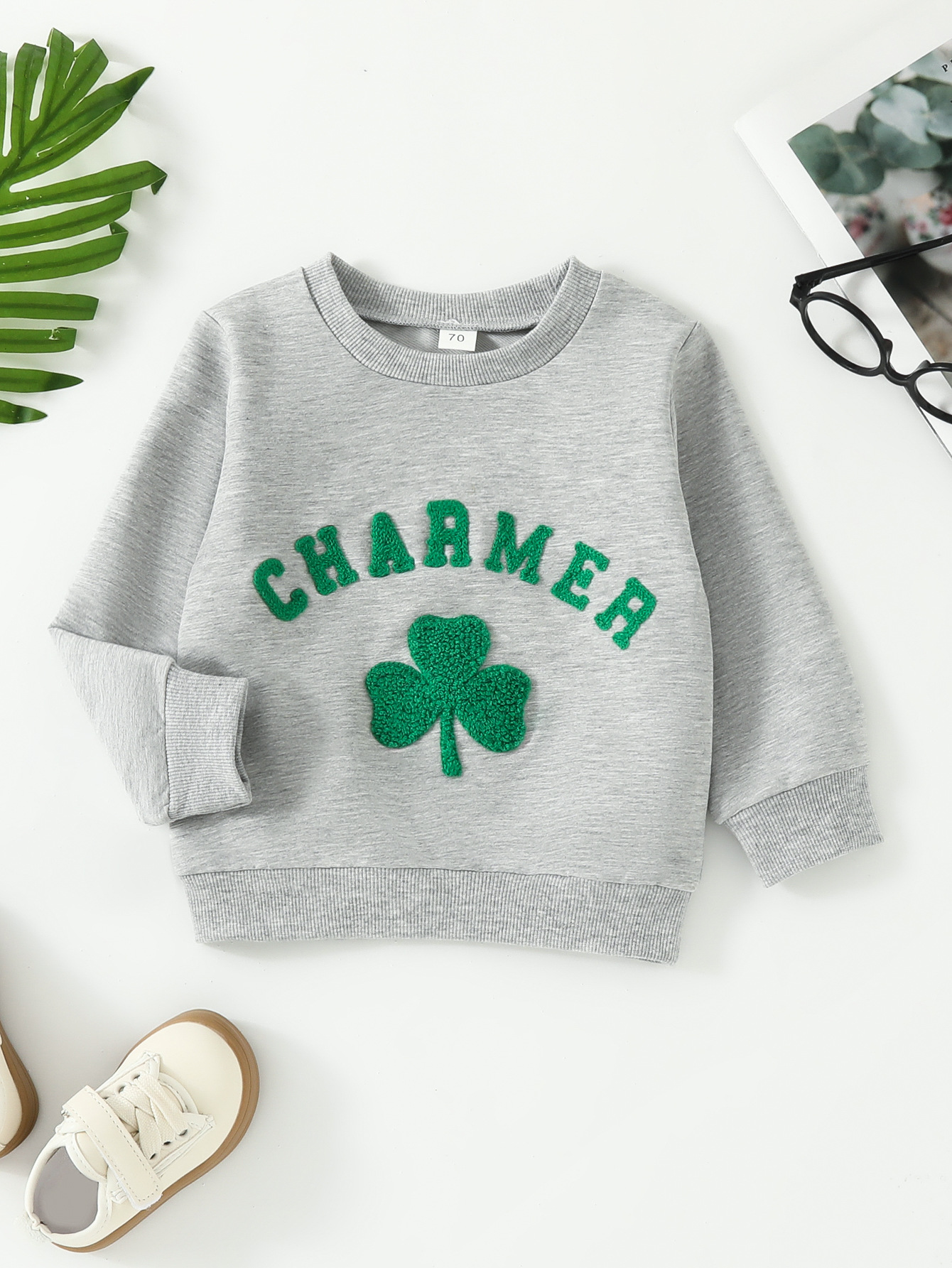 성 패트릭의 날 아기 소년과 소녀 둥근 목 클로버 레터 타월 수 놓은 긴팔 스웨터 봄과 가을 의류스토어 가기