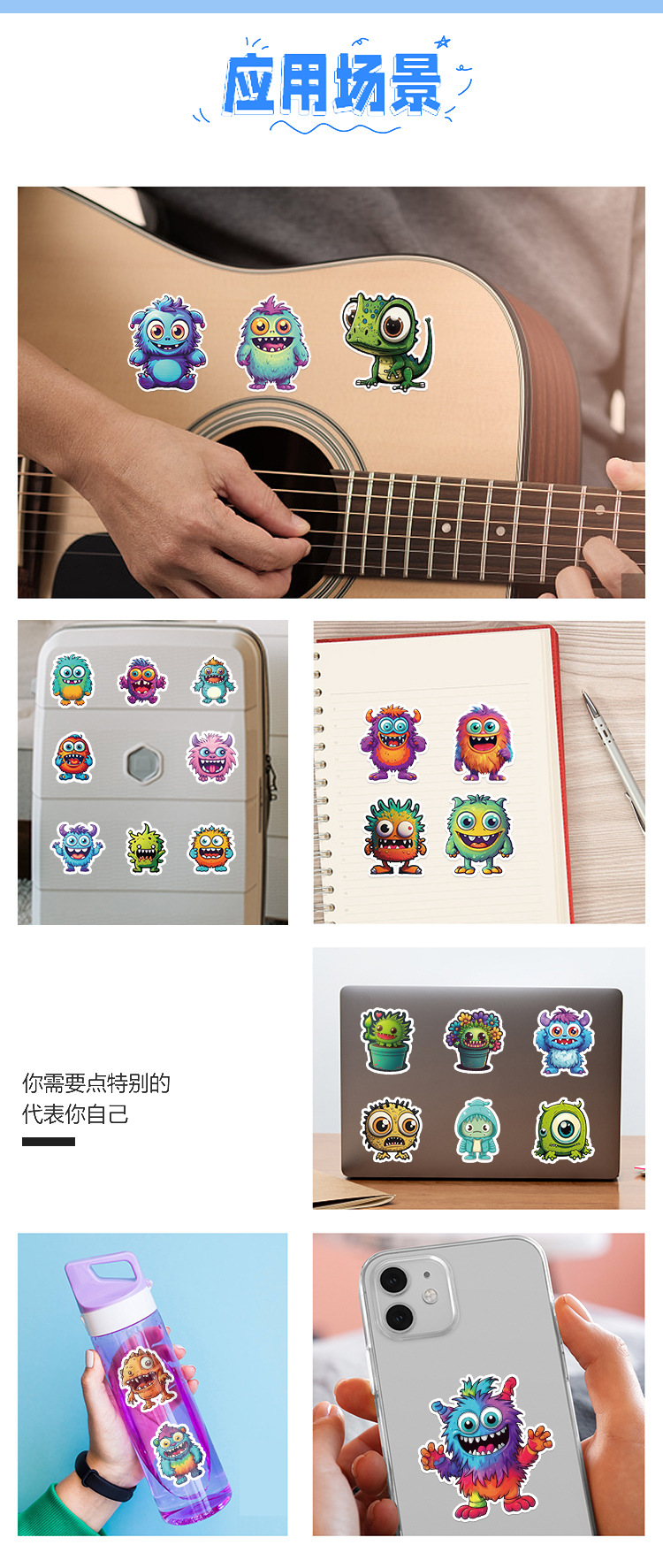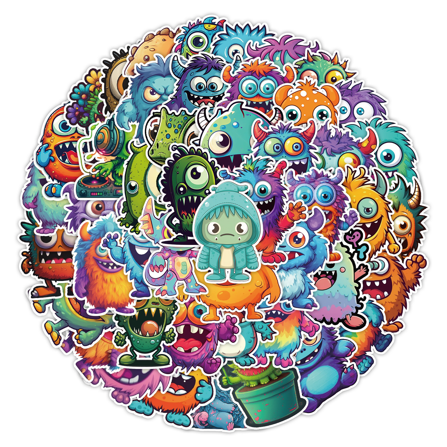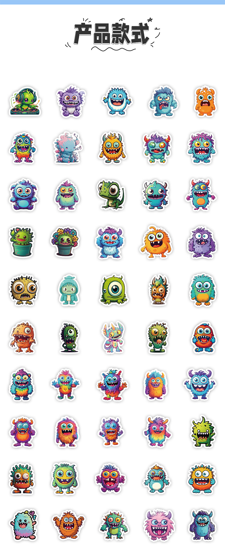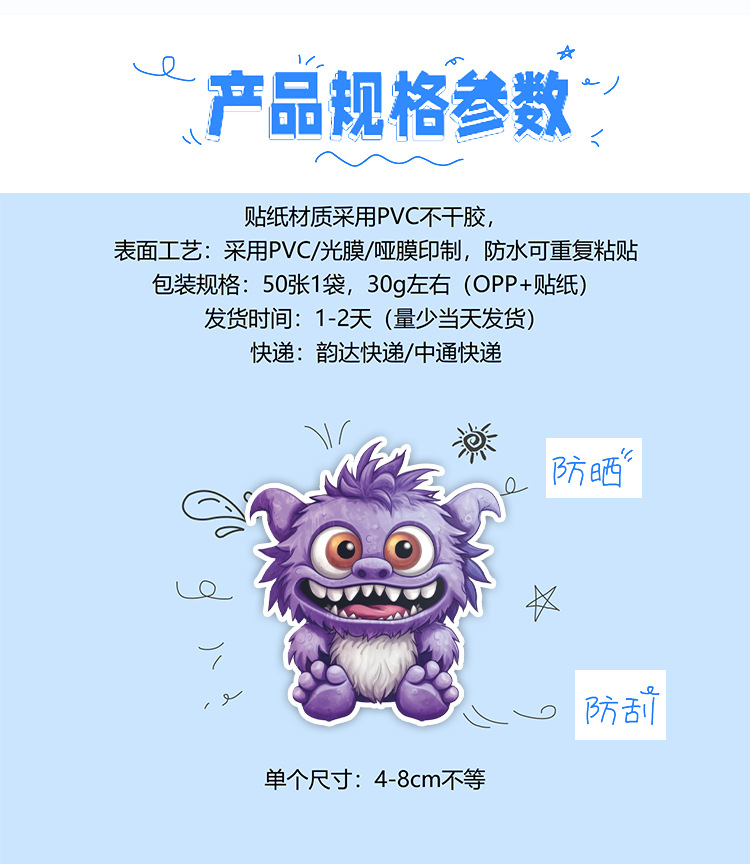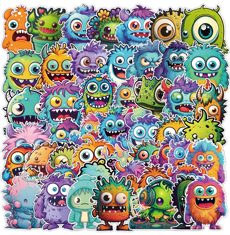 50 만화 작은 괴물 낙서 스티커 자동차 휴대 전화 컴퓨터 장식 스티커 방수 창조적 인 학생 스티커스토어 가기
